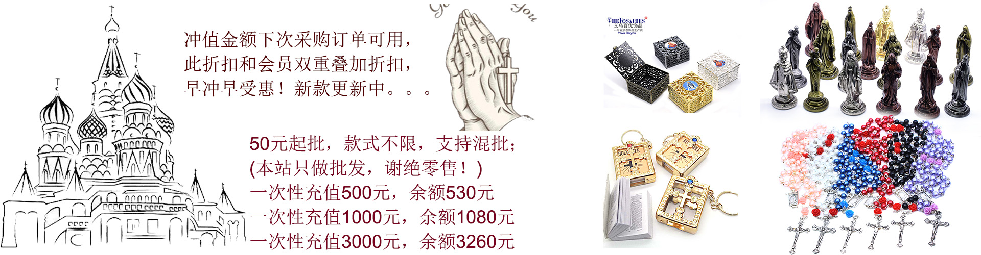 義烏百優(yōu)飾品有限公司,十幾年生產(chǎn)加工經(jīng)驗(yàn),手工工人100多號(hào),注塑壓鑄機(jī)激光切割等配套機(jī)器。 專業(yè)生產(chǎn)天主教、基督教、東正教,及婚禮裝飾品,祈禱珠等宗教飾品,工藝品。 主要有:祈禱珠,念珠手鏈,念珠項(xiàng)鏈,十字架項(xiàng)鏈,十字架擺件,合金十字架,木制十字架,塑料十字架圣像擺件,祈禱卡,包裝盒,圣水瓶,燭臺(tái),儀式用品,婚禮,教會(huì)、組織機(jī)構(gòu)禮品贈(zèng)品等。 另可承接鋅合金新版開模壓鑄,塑料注塑,手工編制/彎針/掛圈類產(chǎn)品,按客戶樣品訂制的宗教類產(chǎn)品。