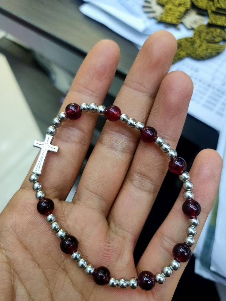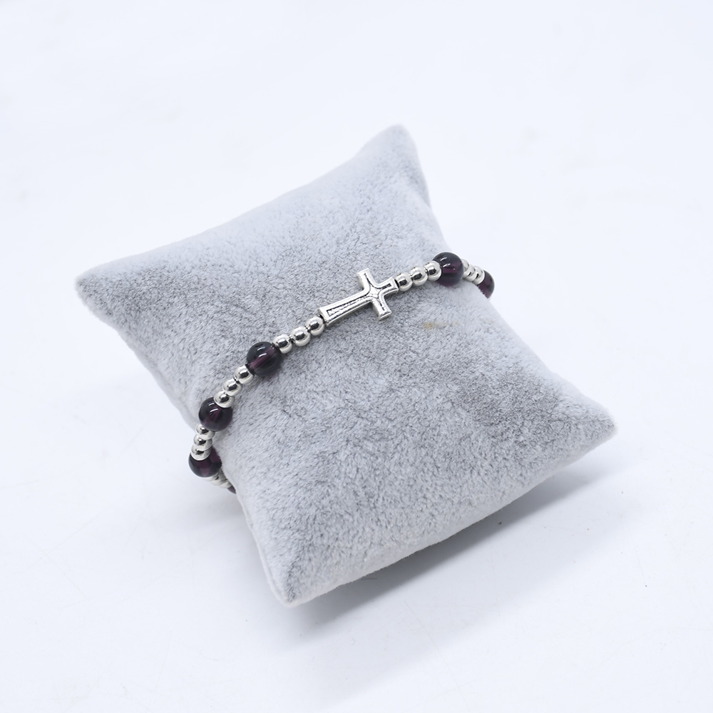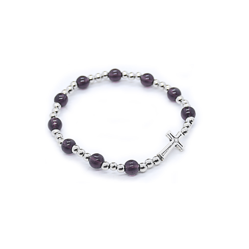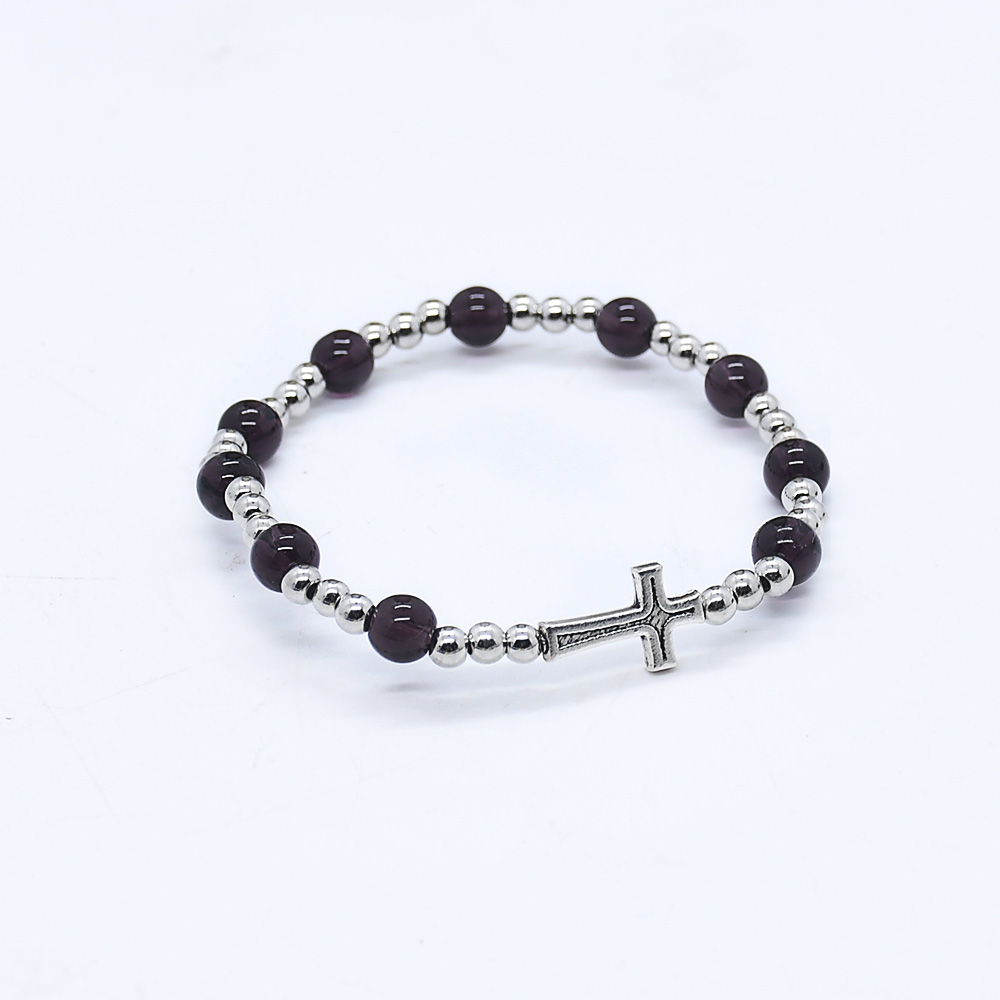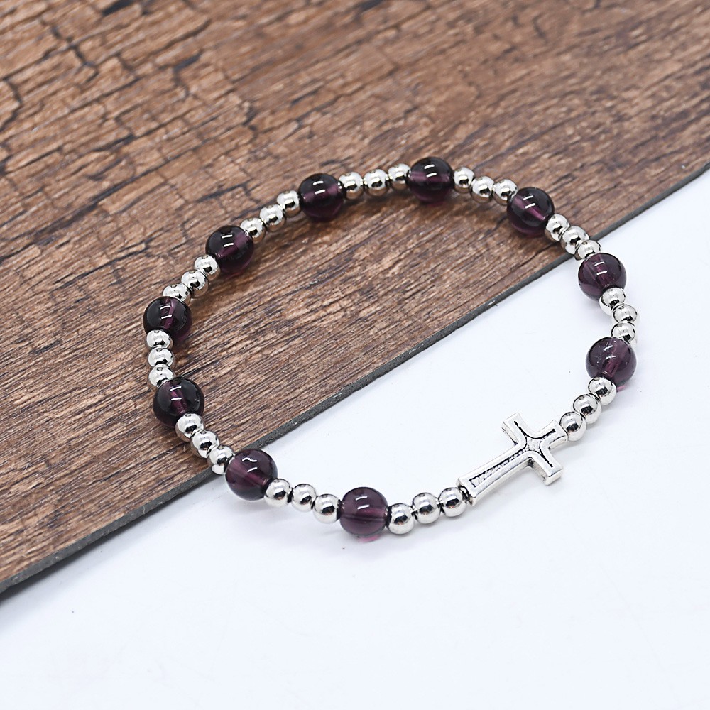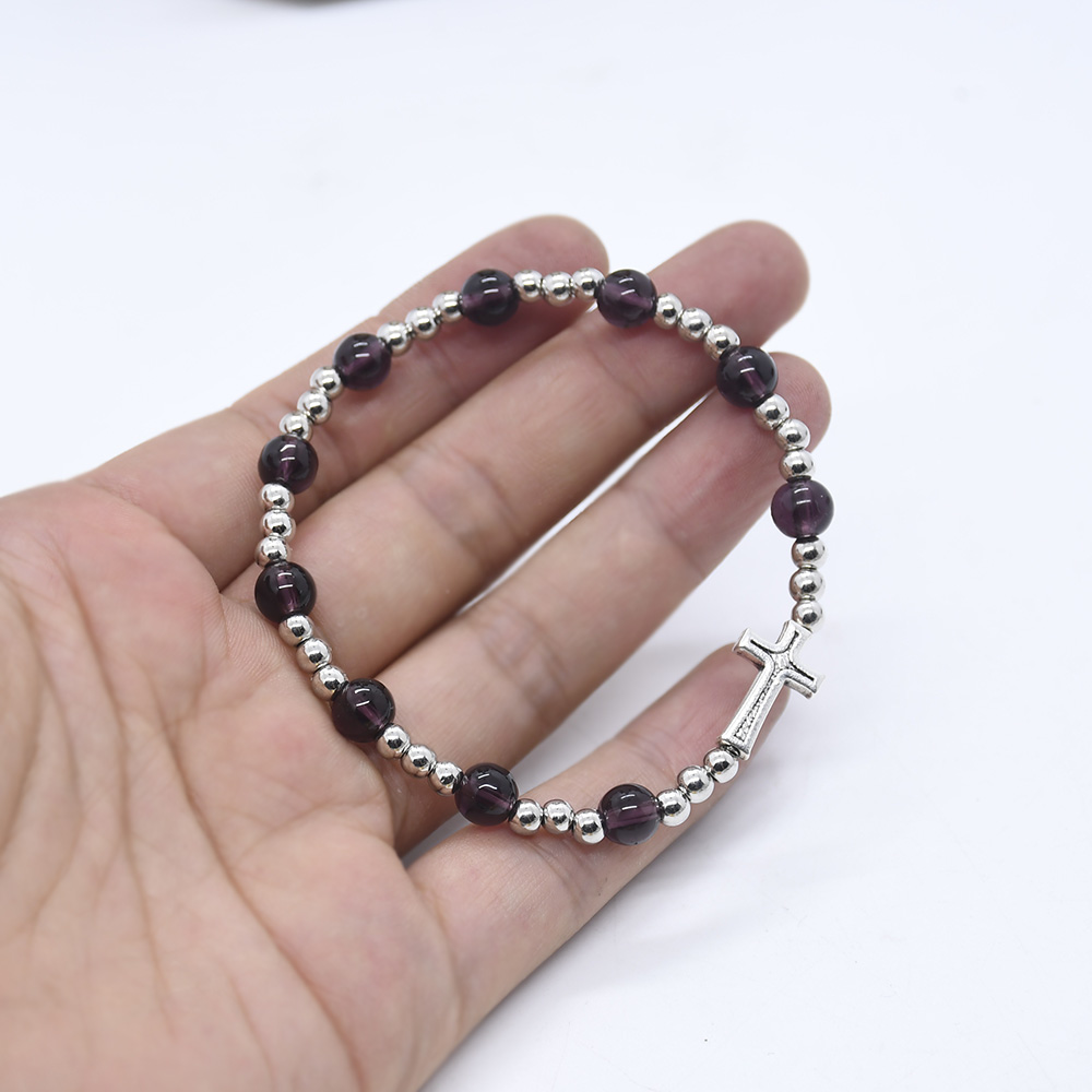 跨境串珠紫水晶手串十字架念珠手鏈歐美簡(jiǎn)約彈力繩