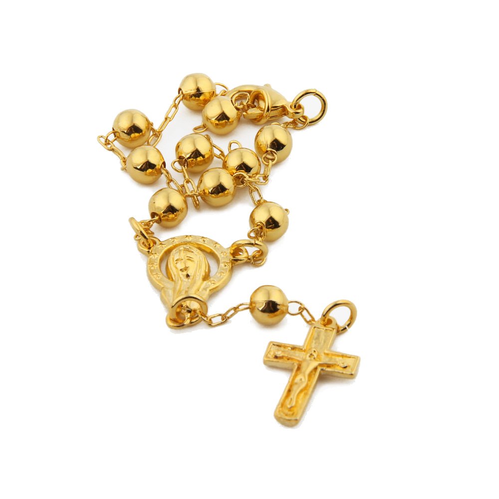 (金色)車掛十字珠念珠洗禮珠十字架手鏈Rosary bracelet