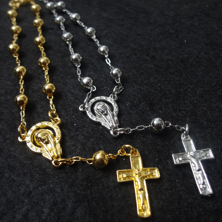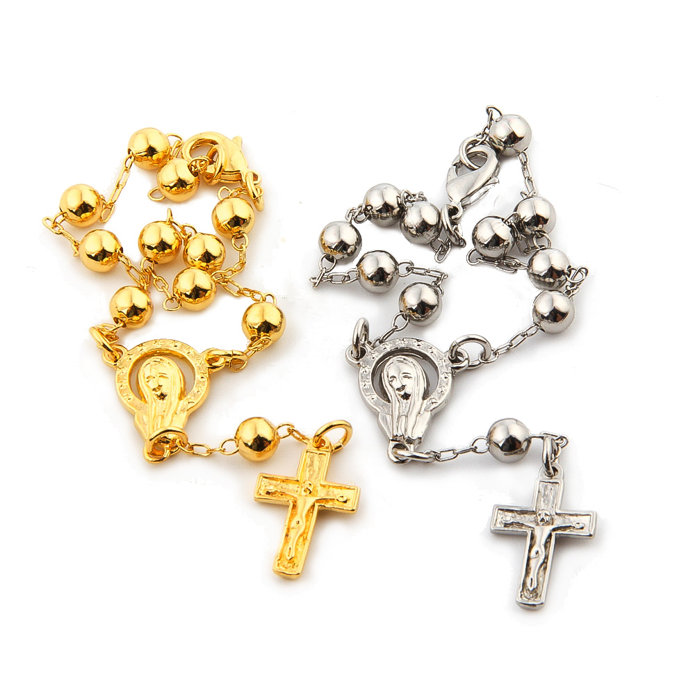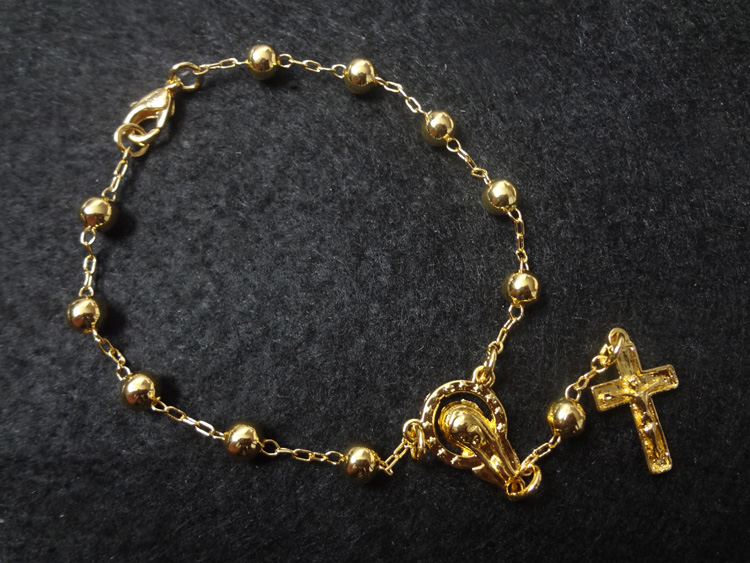 高檔精制鍍金銀4m銅珠天主教十字架念珠手鏈