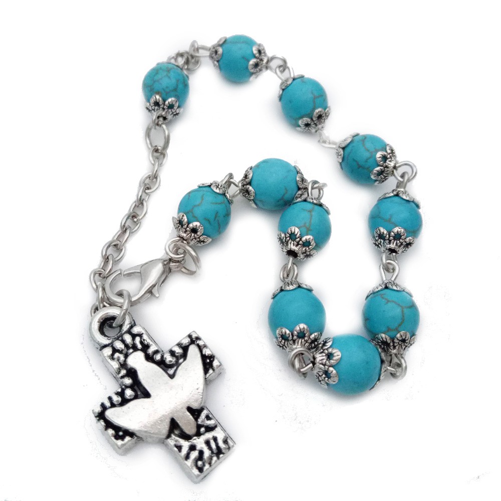精制松石珠和平鴿十字架念珠手鏈 帶龍蝦扣可調節(jié) 13.3g