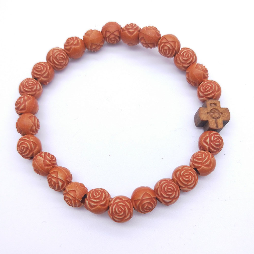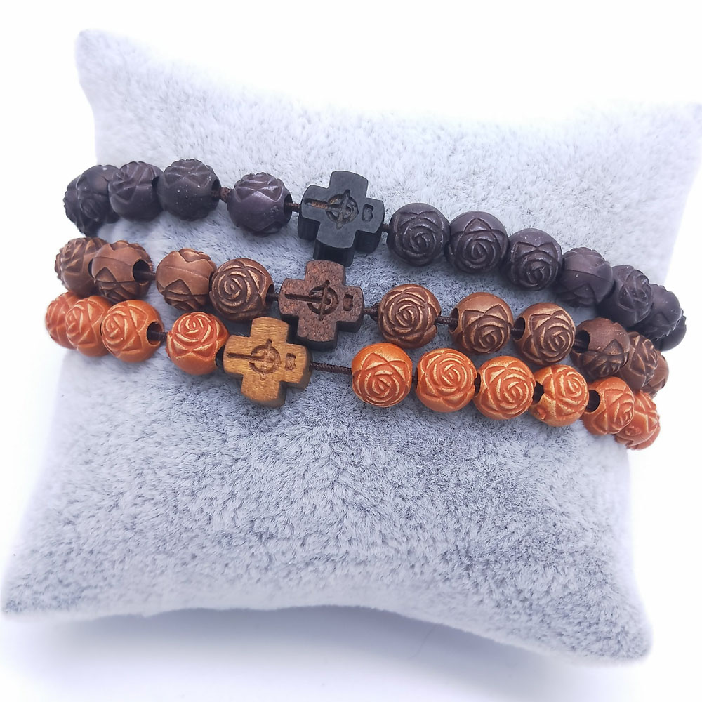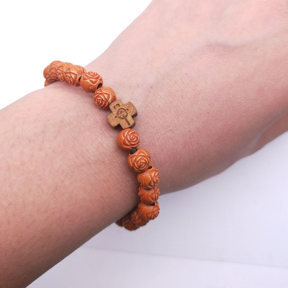 跨境電商飾品仿木玫瑰珠十字架手鏈?zhǔn)诛楋椘反槟钪槭宙?5.5g