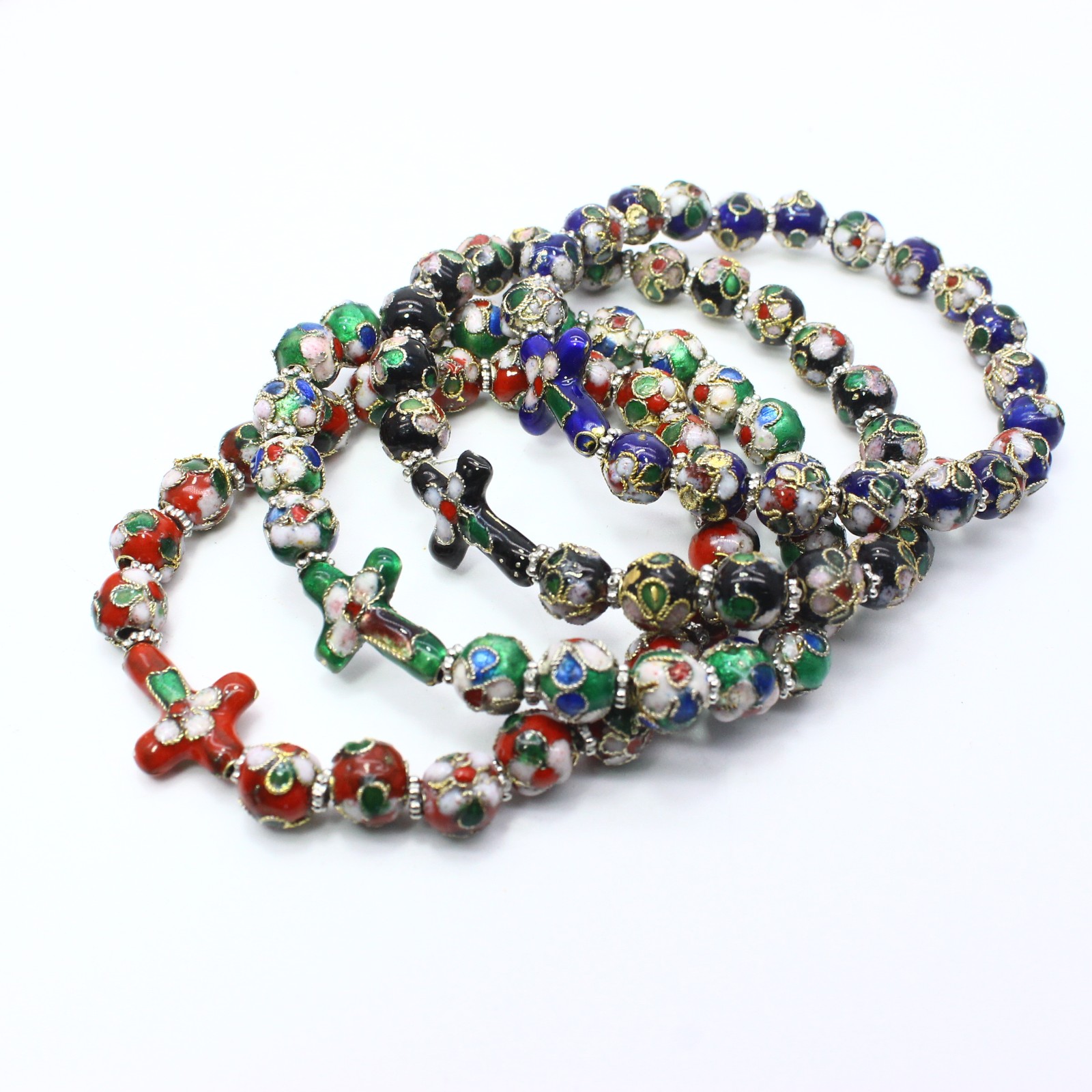 純手工景泰藍珠手串串珠十字架手鏈手環(huán)(彈力繩)bracelet