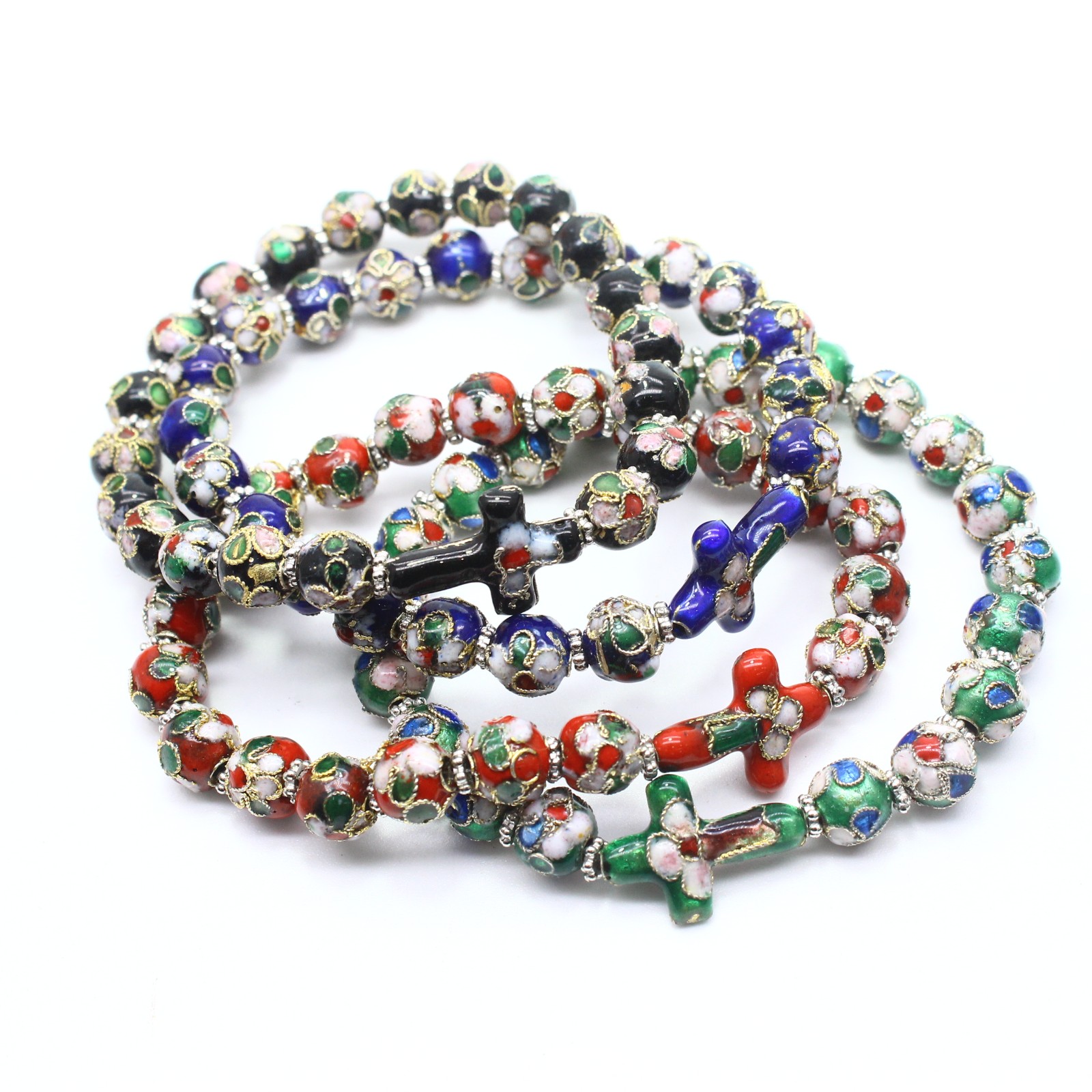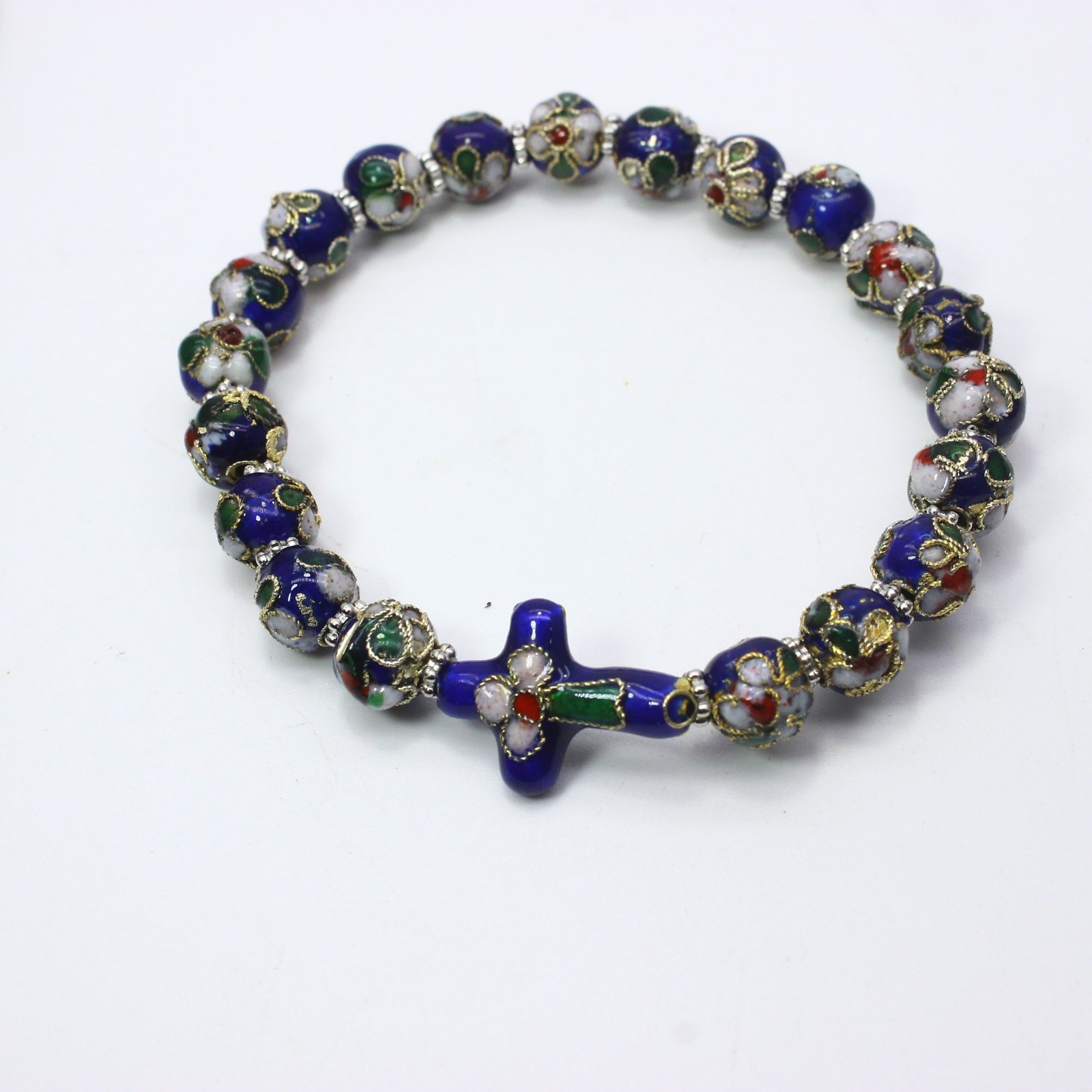 純手工景泰藍(lán)珠手串串珠十字架手鏈?zhǔn)汁h(huán)(彈力繩)bracelet