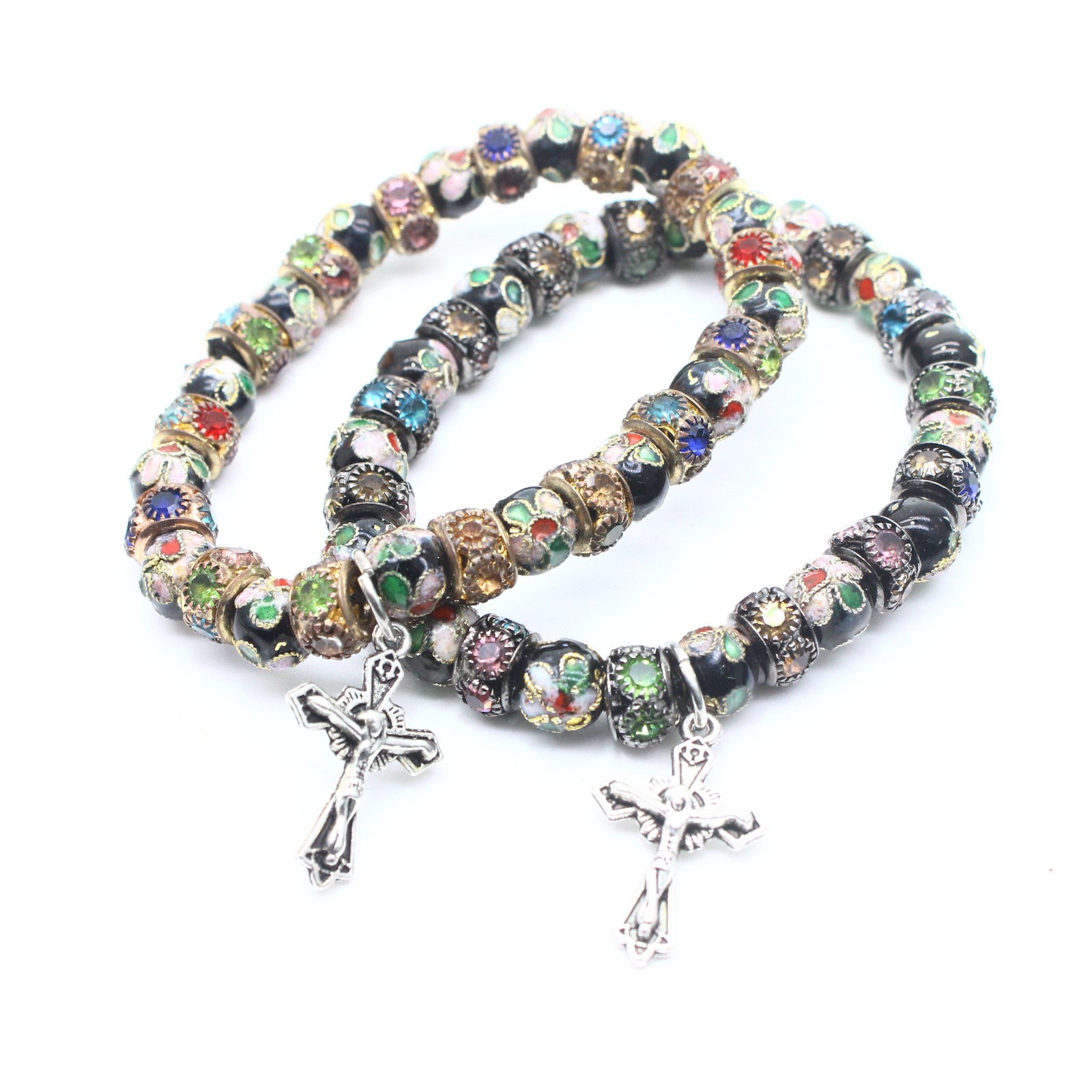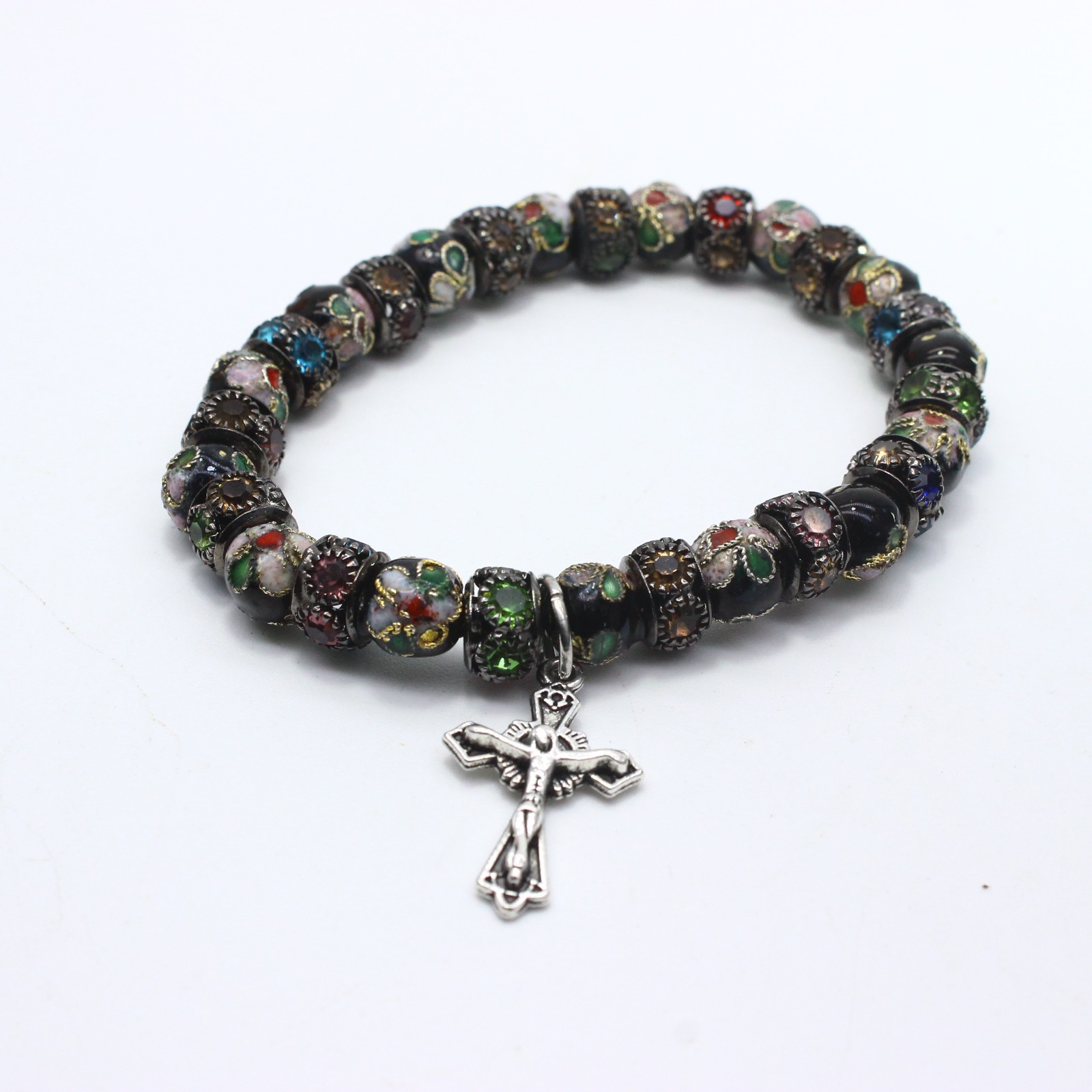 閃鉆寶石手工景泰藍(lán)十字架手鏈?zhǔn)汁h(huán)(彈力繩)bracelet
