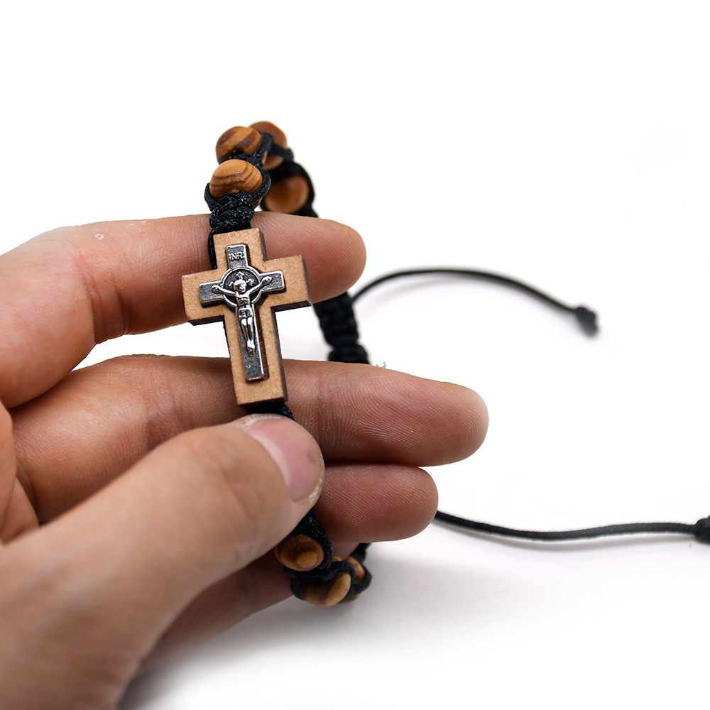 松木珠十字架手鏈合金松木珠編織中國結(jié)念珠手鏈 可調(diào)節(jié)外貿(mào)跨境