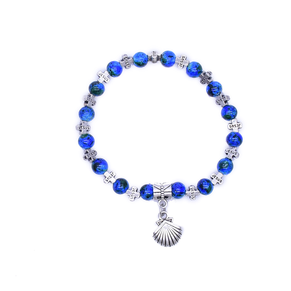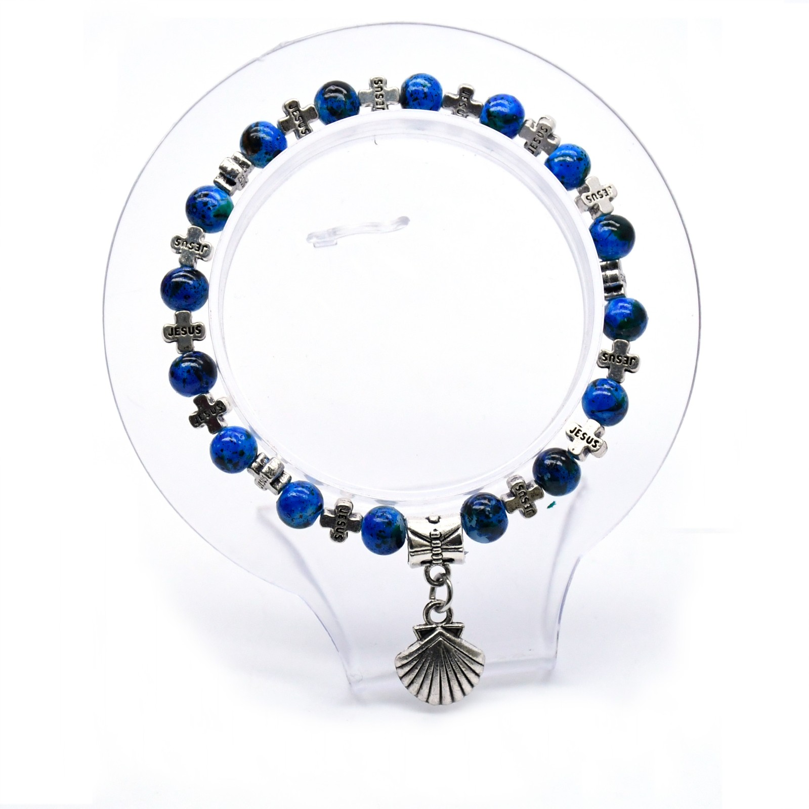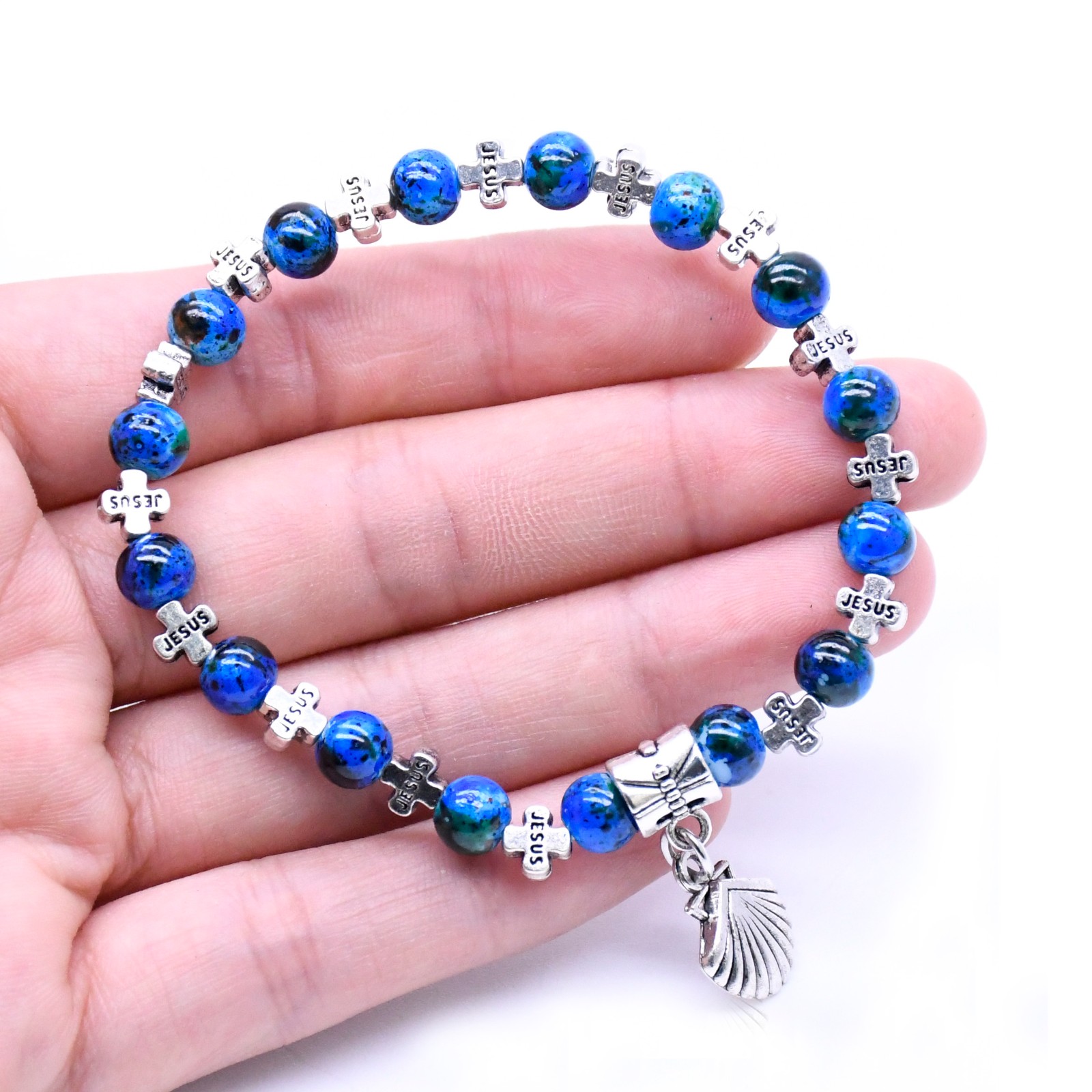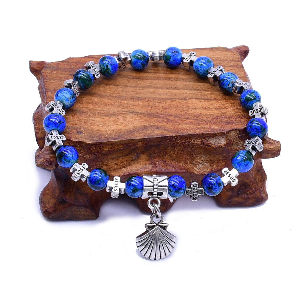 外貿(mào)出口孔雀石十字架手鏈圣心手串彈力繞繩手環(huán) Maria bracelet