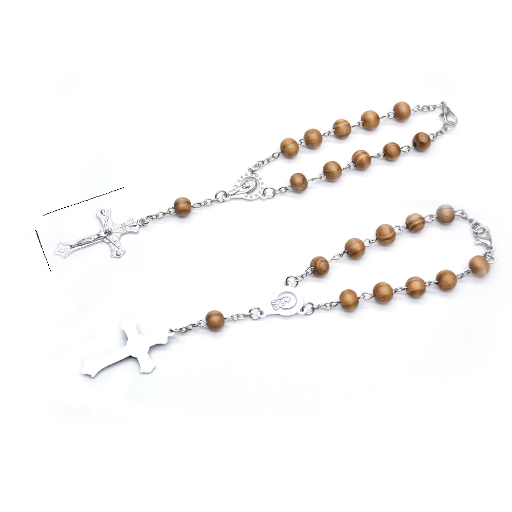 松木彎針十字架念珠手鏈