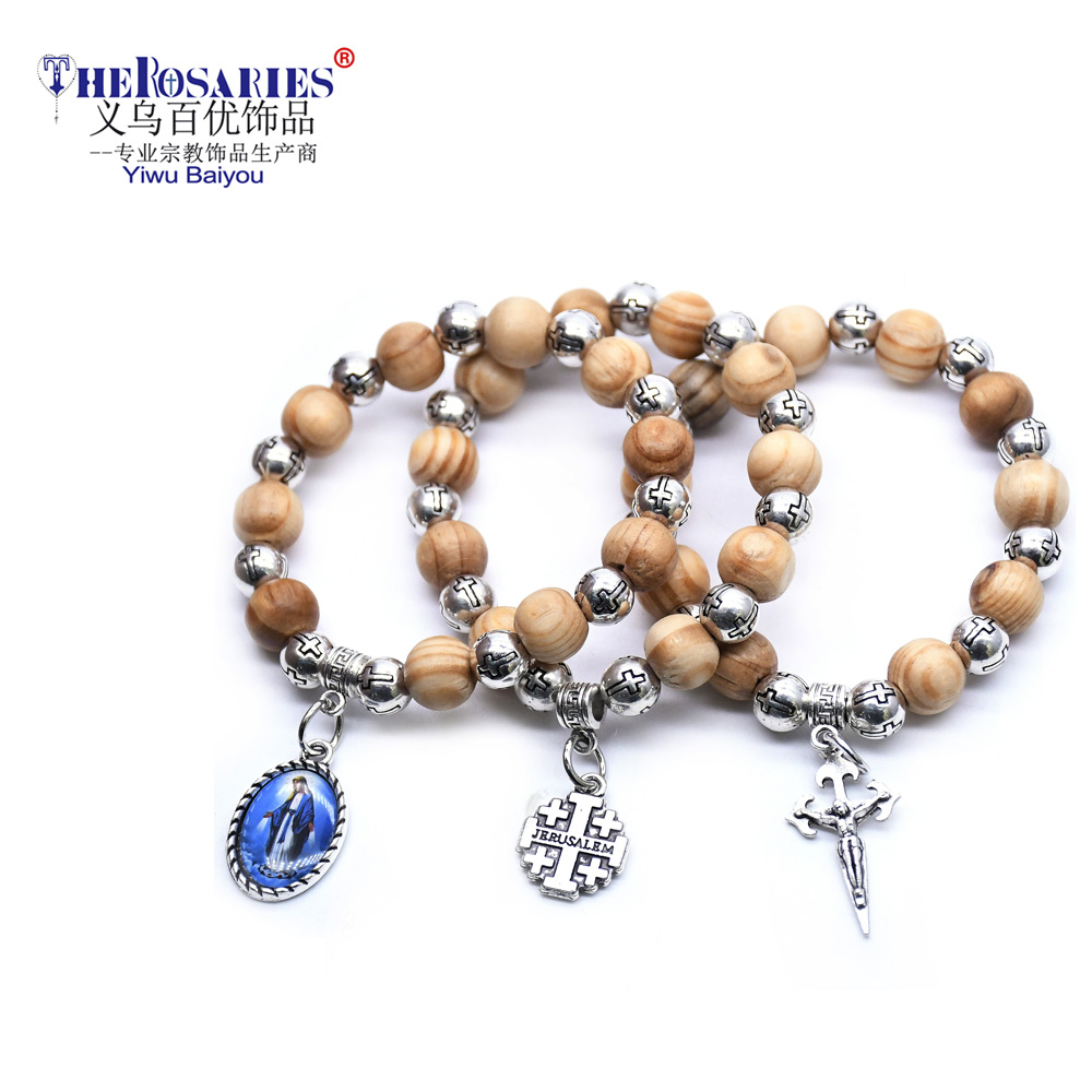 外貿(mào)出口孔雀石十字架手鏈圣心手串彈力繞繩手環(huán) Maria bracelet