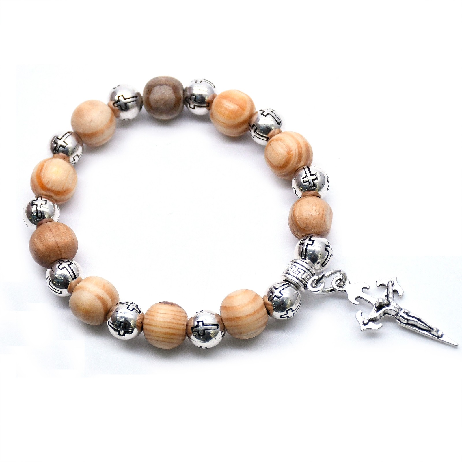 松木珠和十字珠圣母十字架手鏈串珠 松木珠和十字珠圣母十字架手鏈串珠 RB-180-1 2.50 購買
