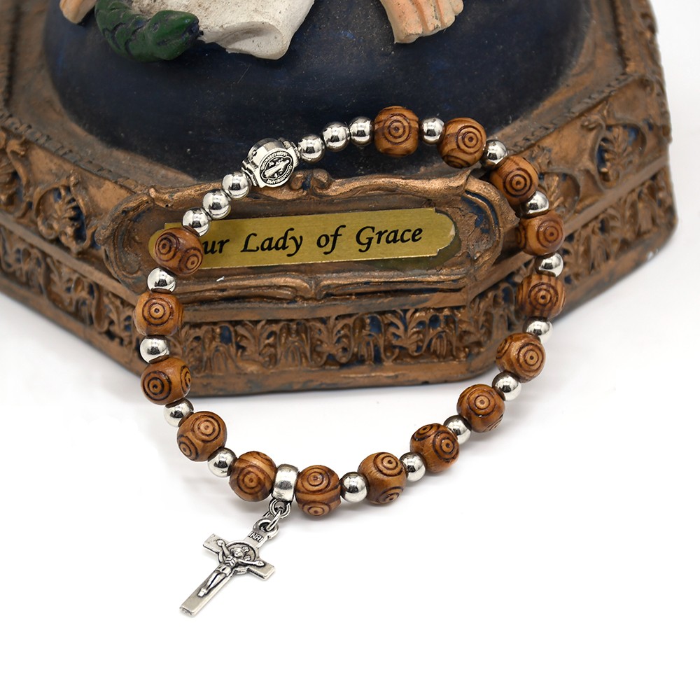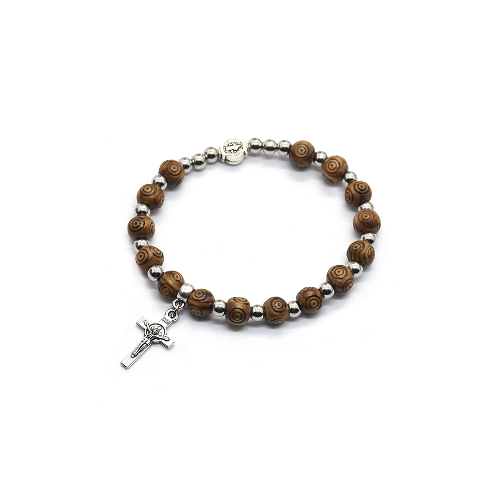 電商外貿(mào)熱銷復(fù)古流行圣本篤咖色手工圈邪眼松木珠串十字架手鏈