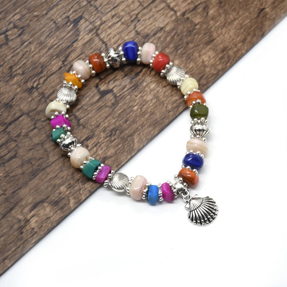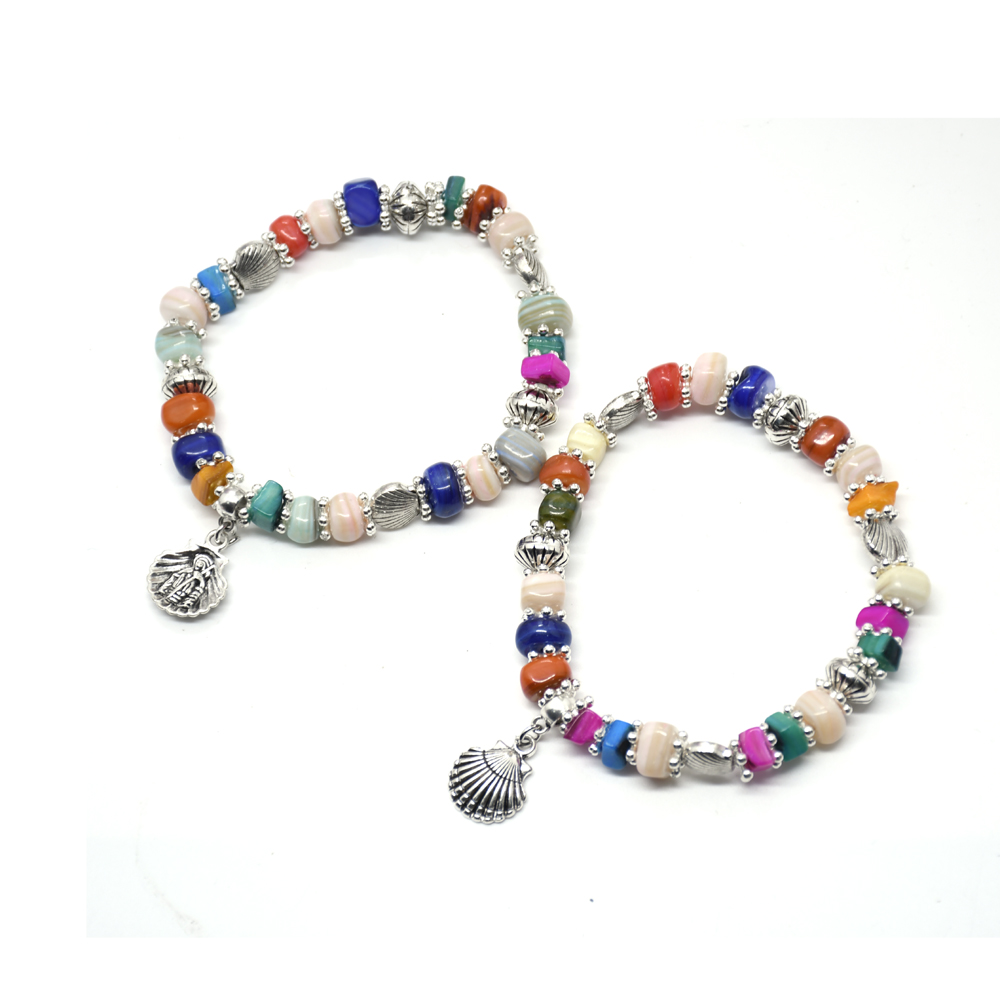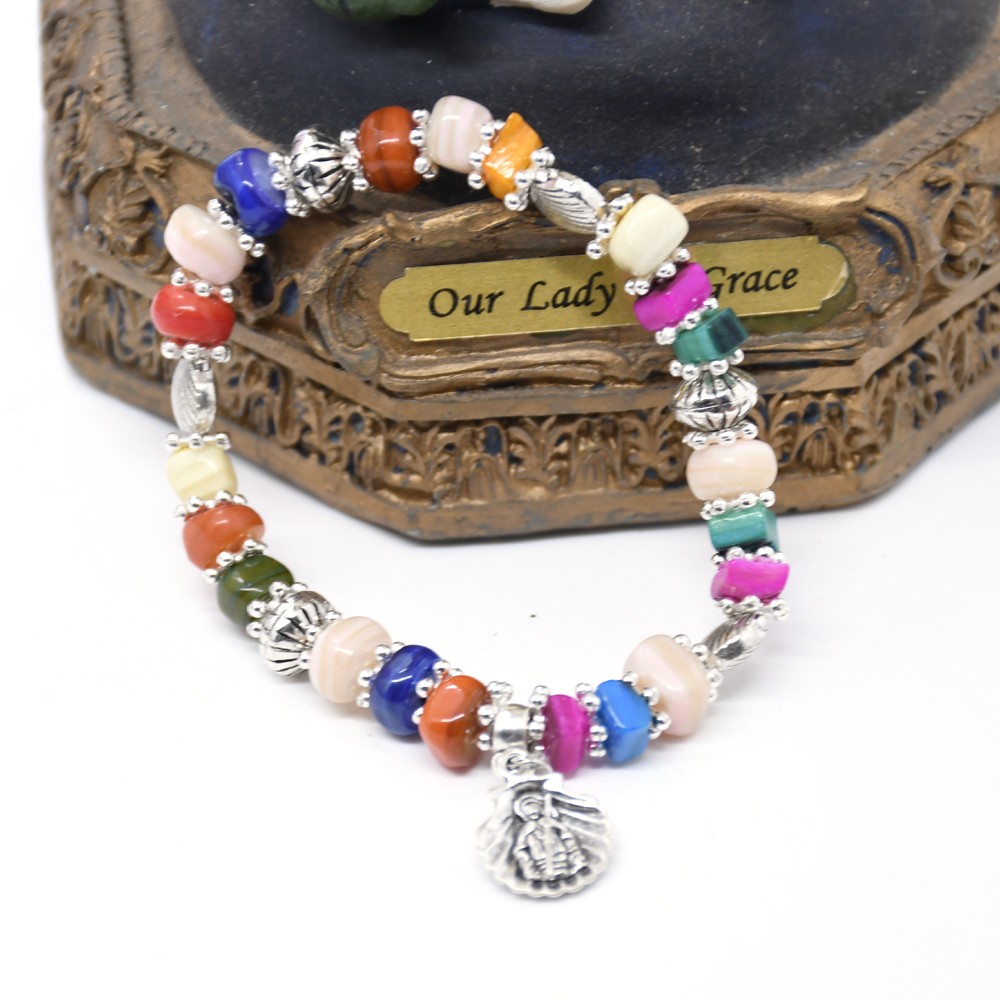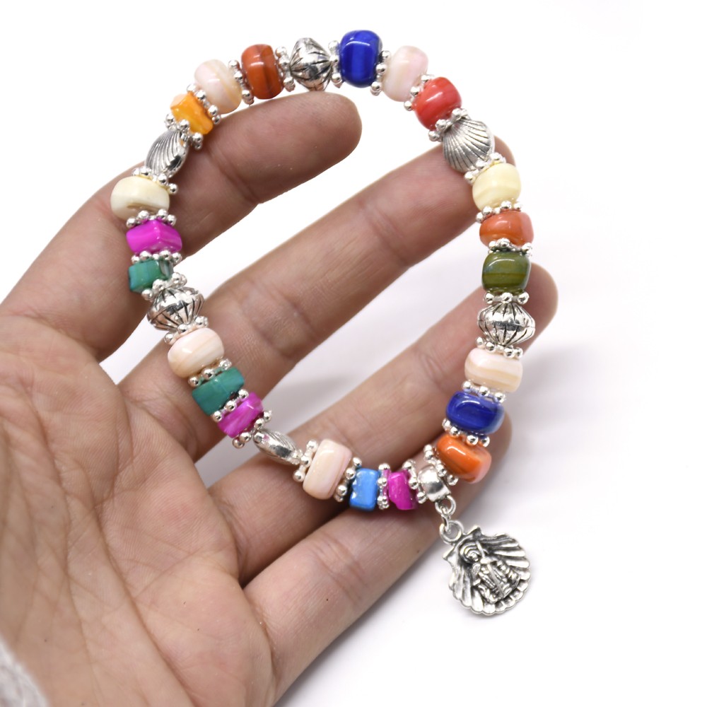 外貿出口孔雀石十字架手鏈圣心手串彈力繞繩手環(huán) Maria bracelet