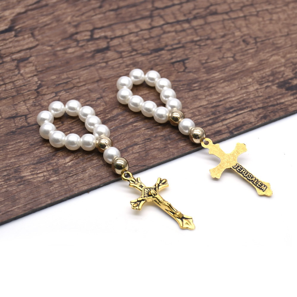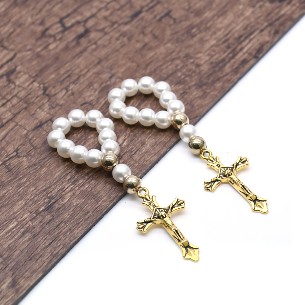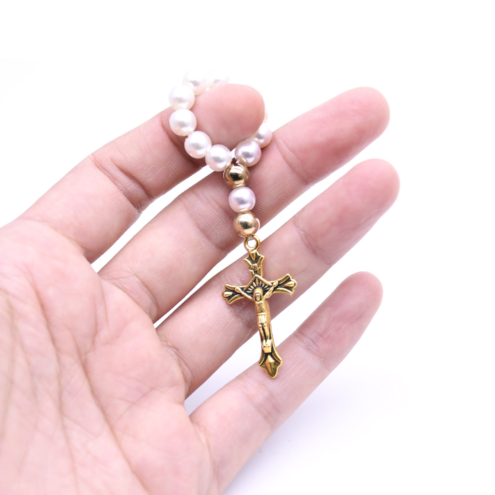 (金色)車掛十字珠念珠洗禮珠十字架手鏈Rosary bracelet