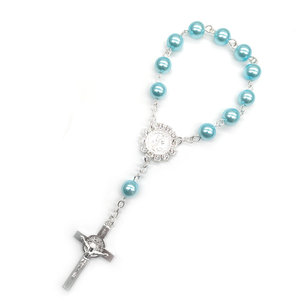 (銀色白K)車掛十字珠念珠洗禮珠十字架手鏈Rosary bracelet