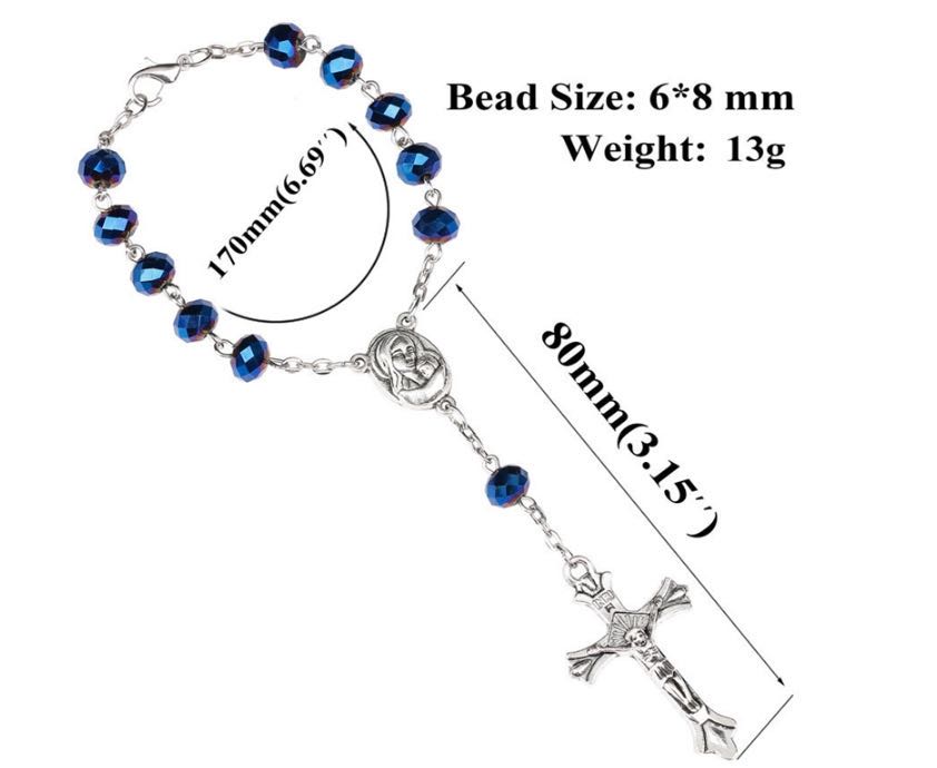 十字架水晶念珠手鏈?zhǔn)执汁h(huán)彎針祈禱珠Rosary bracelet