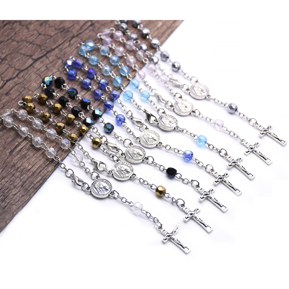 (銀色白K)車掛十字珠念珠洗禮珠十字架手鏈Rosary bracelet