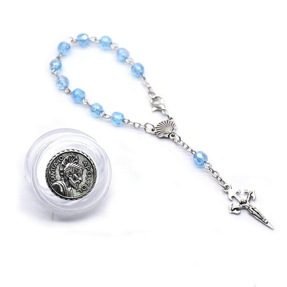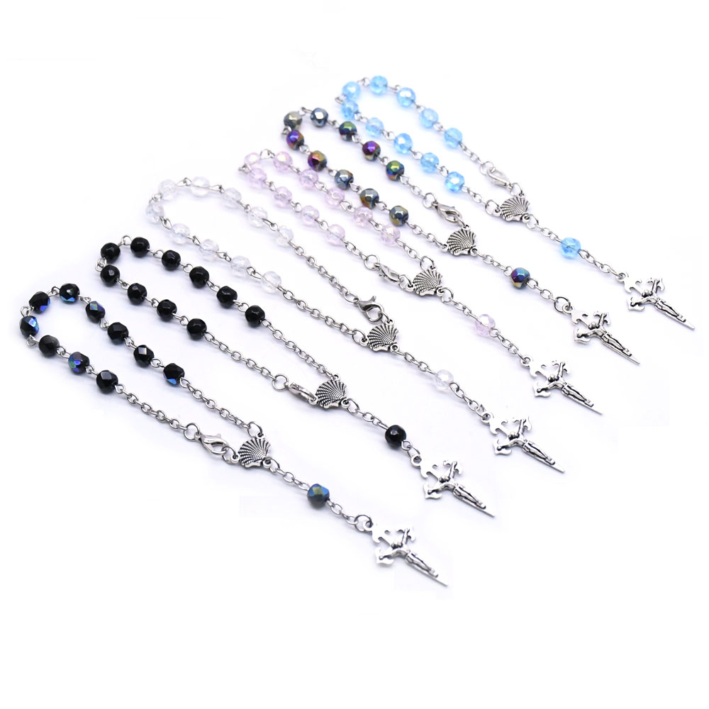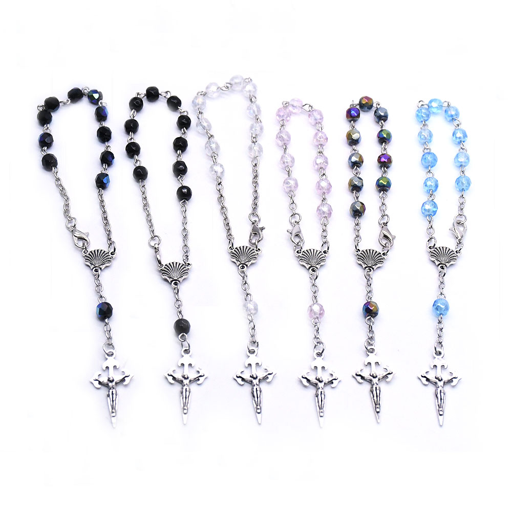 盒裝6mm水晶念珠手鏈合金十字架手串手環(huán)祈禱珠Rosary bracelet
