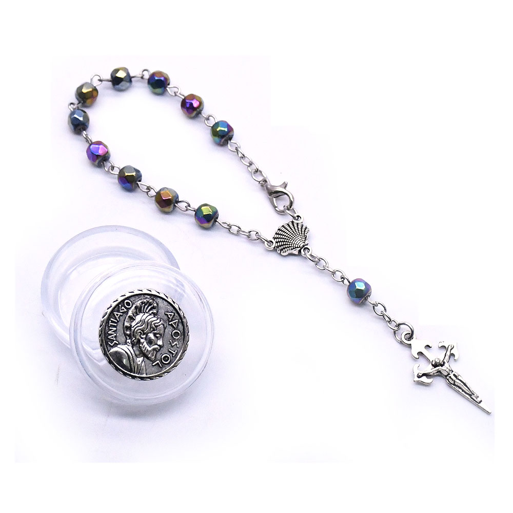 (銀色白K)車掛十字珠念珠洗禮珠十字架手鏈Rosary bracelet