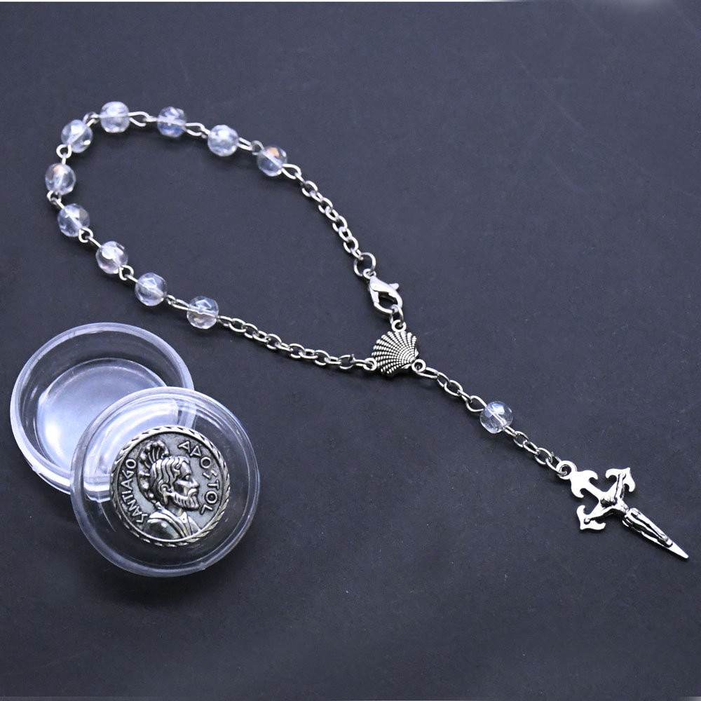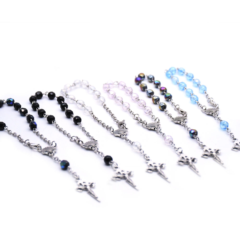 (銀色白K)車(chē)掛十字珠念珠洗禮珠十字架手鏈Rosary bracelet
