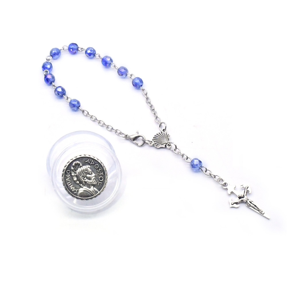 (銀色白K)車掛十字珠念珠洗禮珠十字架手鏈Rosary bracelet