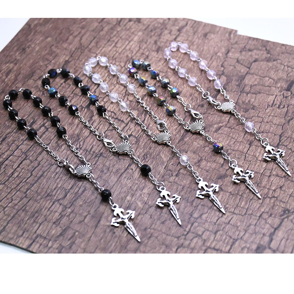 十字架手鏈手工玫瑰念珠手鏈彩色軟陶兒童十字架祈禱珠Rosary