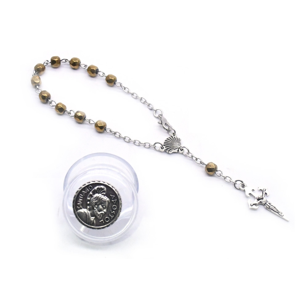 (金色)車掛十字珠念珠洗禮珠十字架手鏈Rosary bracelet