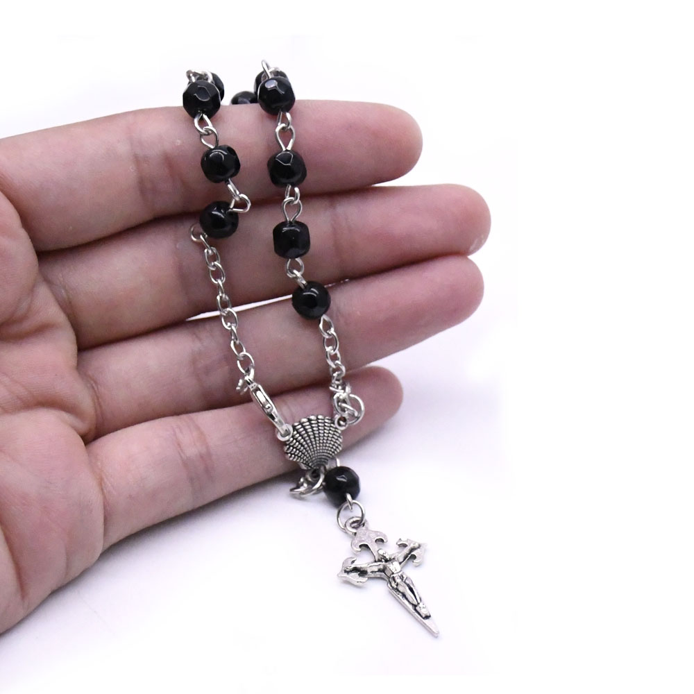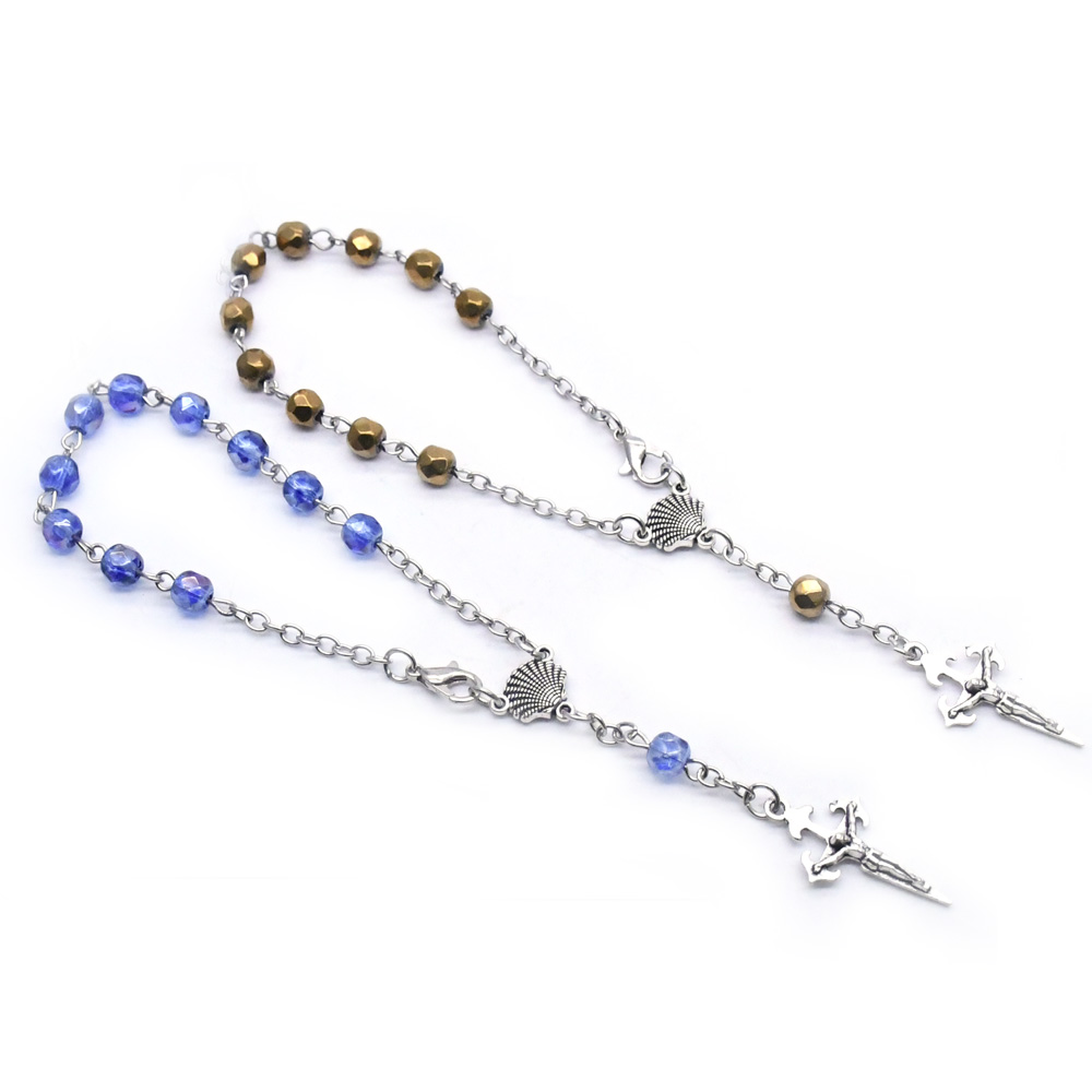 盒裝6mm水晶念珠手鏈合金十字架手串手環(huán)祈禱珠Rosary bracelet