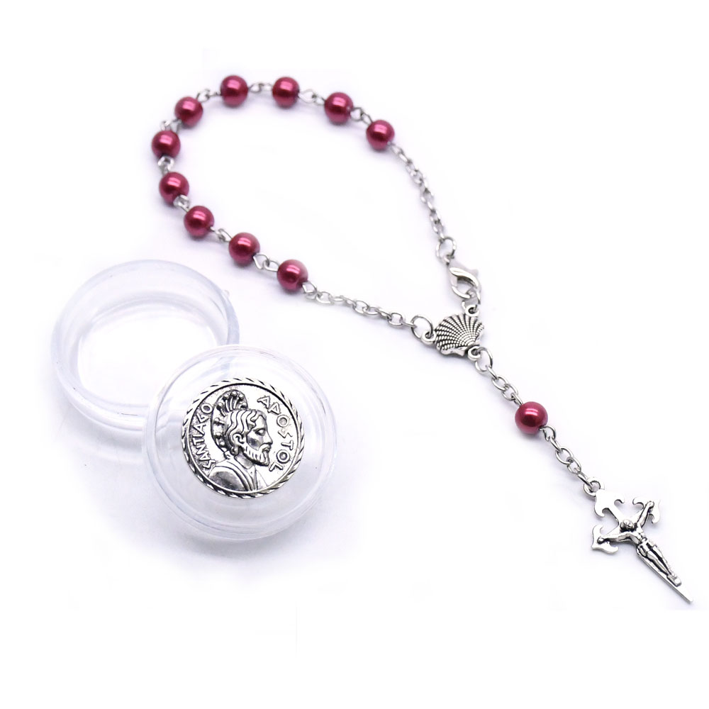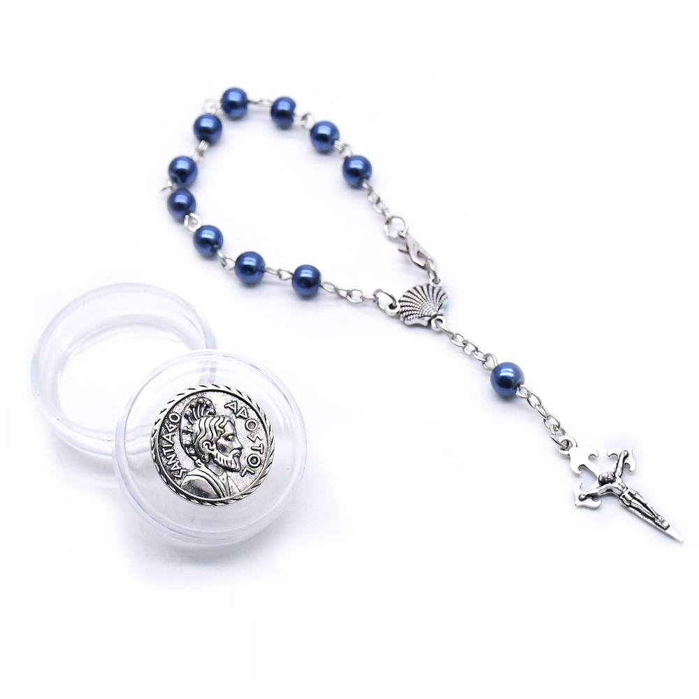 (銀色白K)車掛十字珠念珠洗禮珠十字架手鏈Rosary bracelet