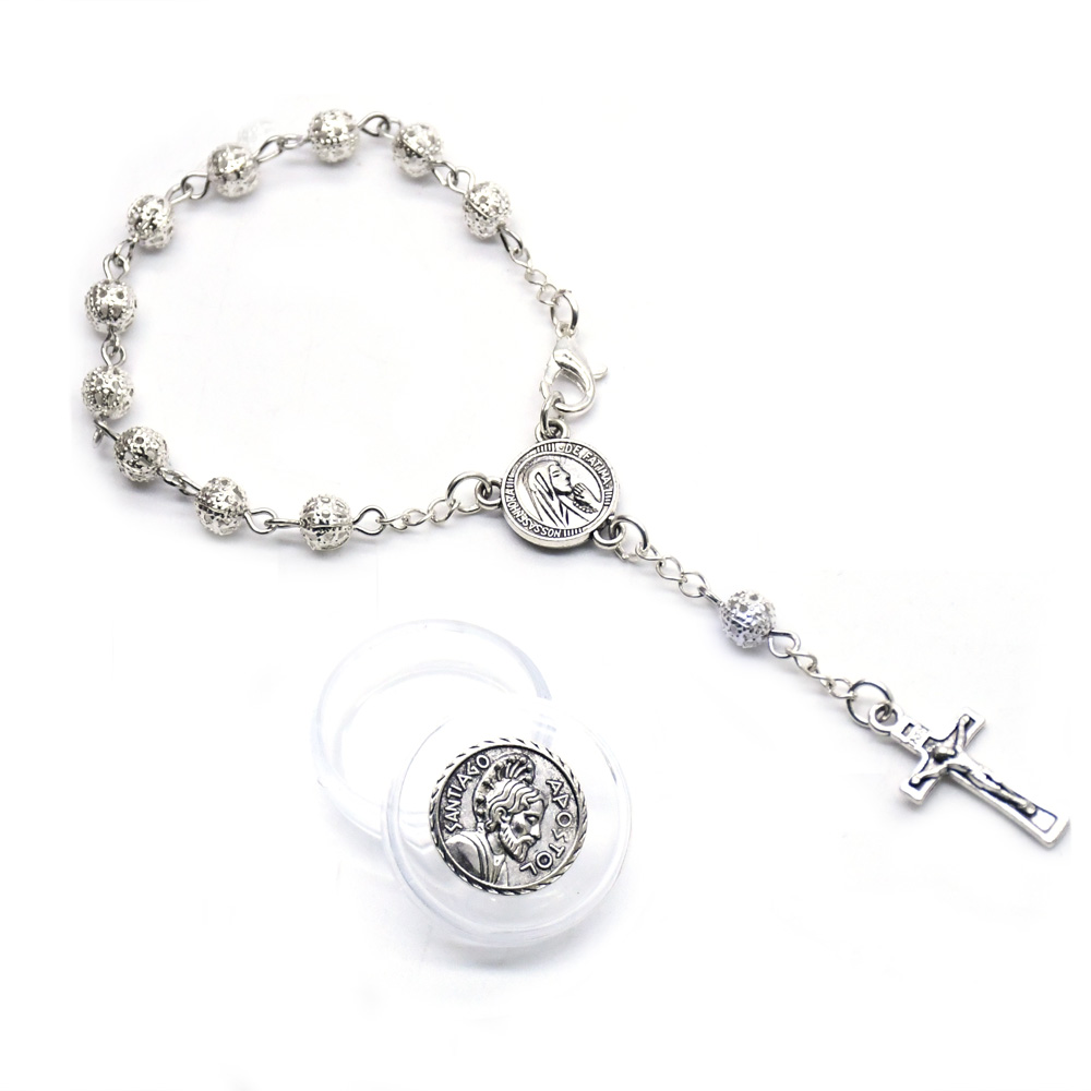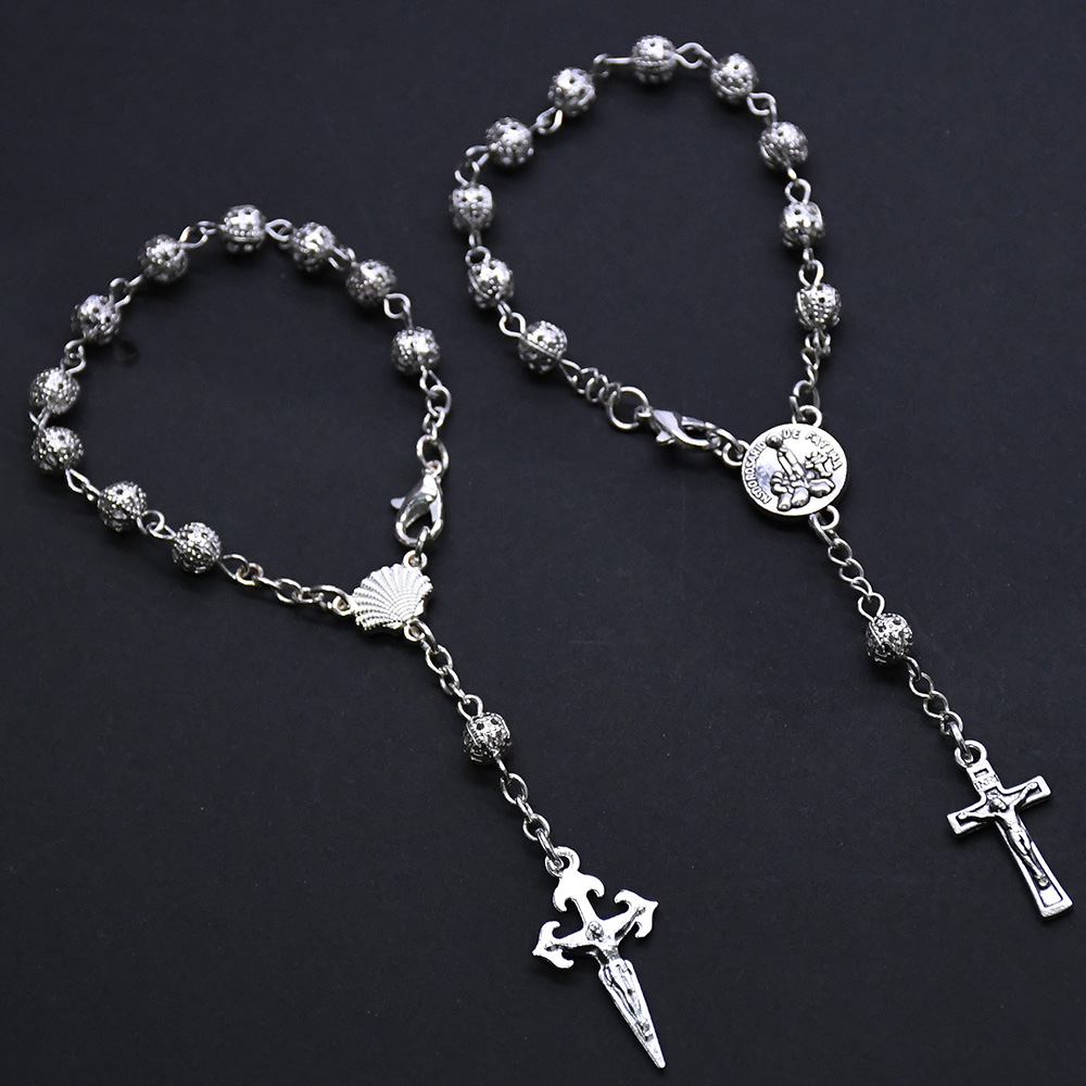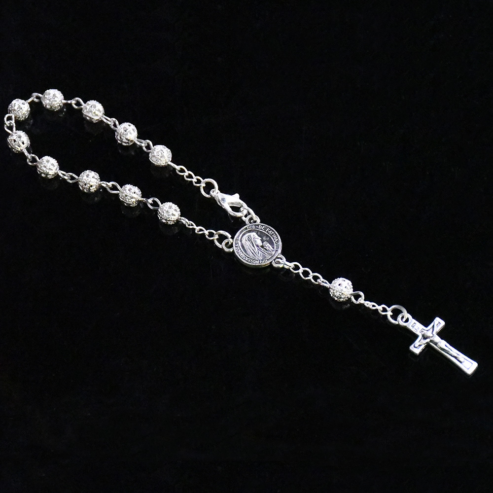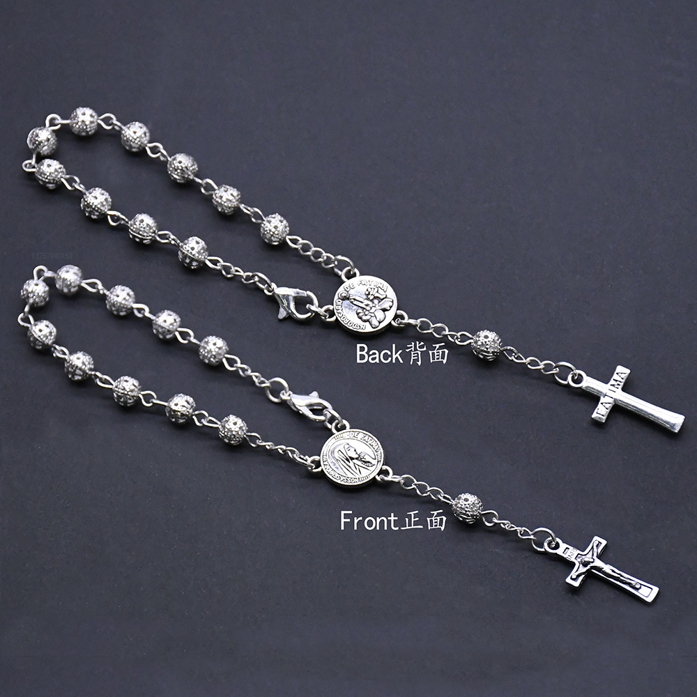 (銀色白K)車(chē)掛十字珠念珠洗禮珠十字架手鏈Rosary bracelet