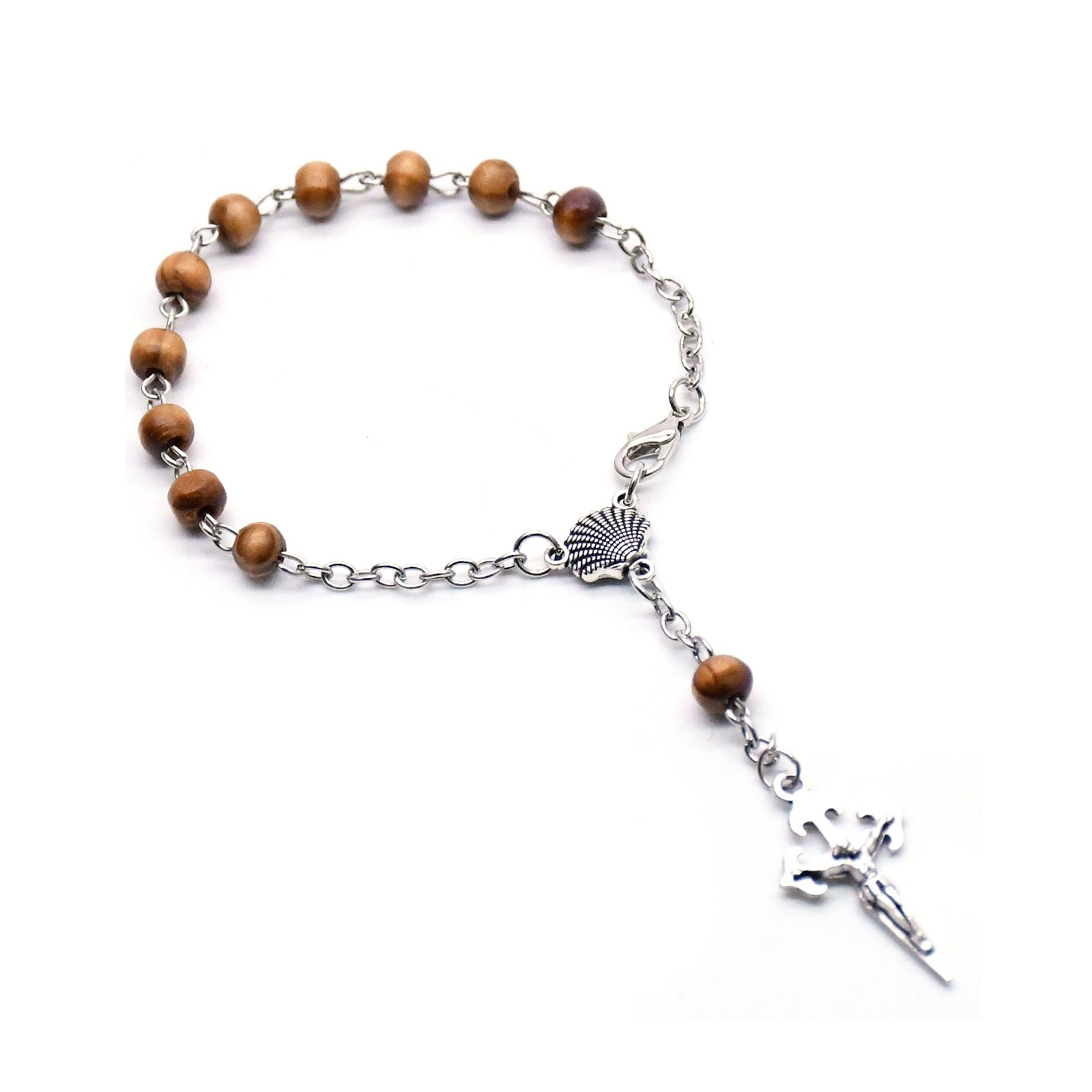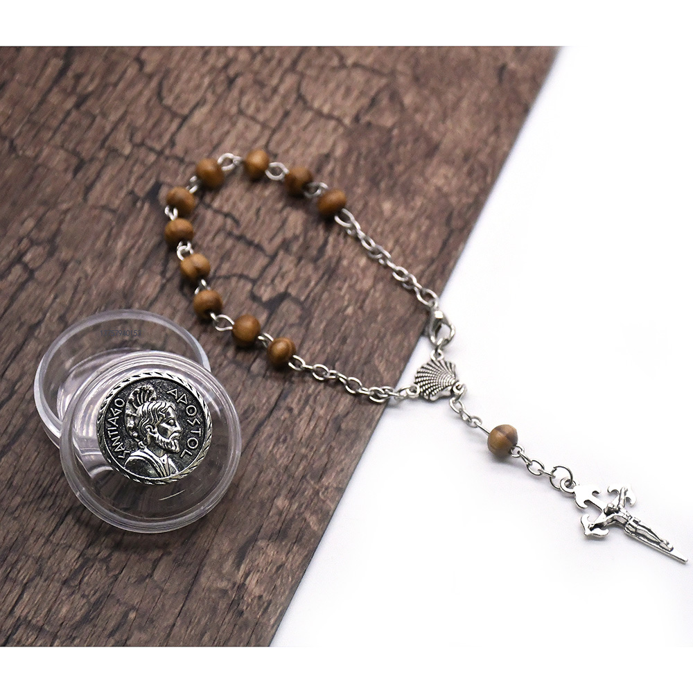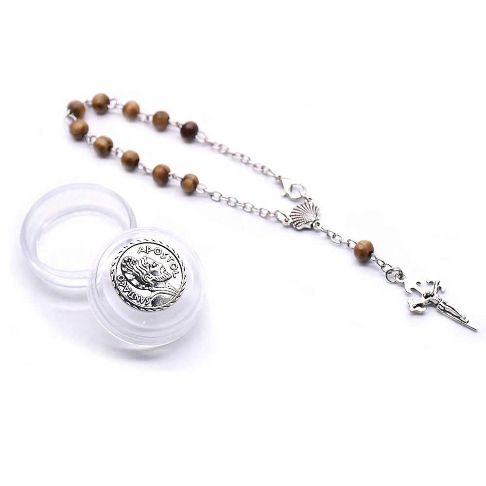 盒裝6mm木珠念珠手鏈合金十字架手串手環(huán)祈禱珠Rosary bracelet