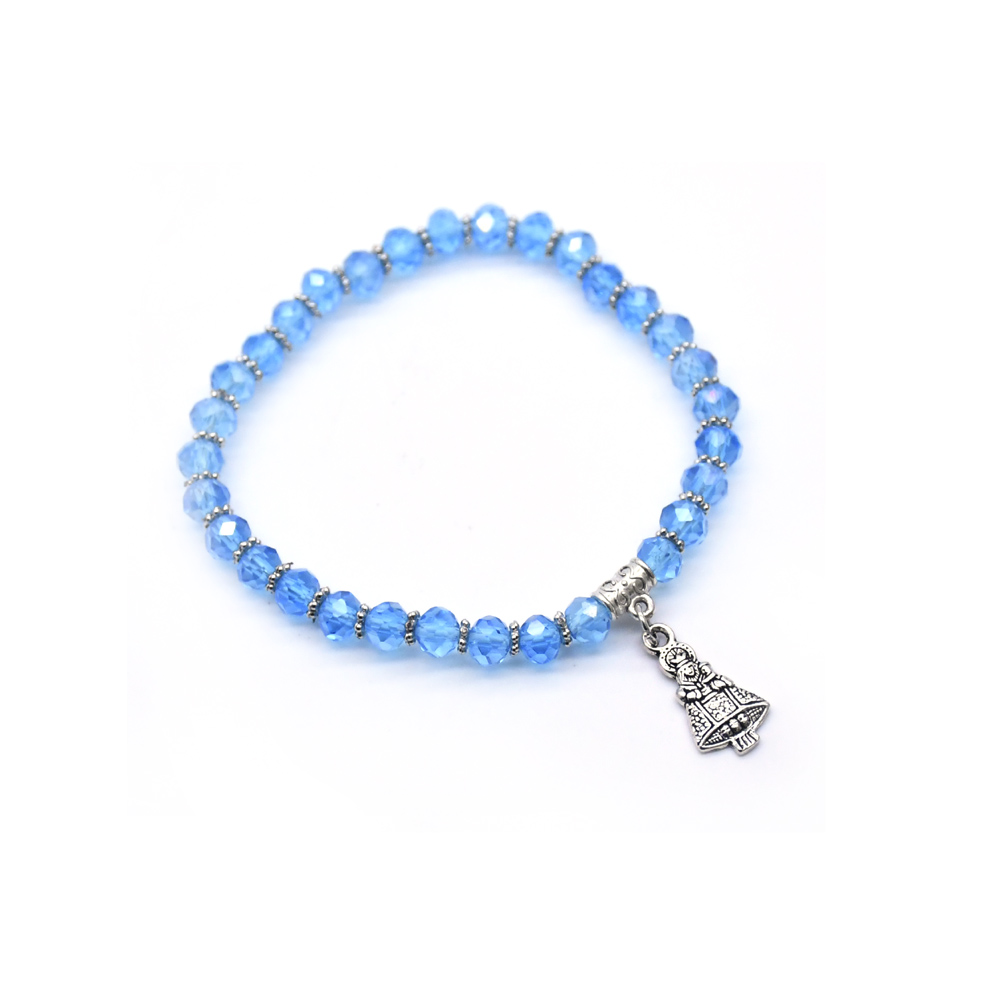 (湖藍)水晶手鏈十字架手鏈彈力手環(huán)珠子水晶手串女