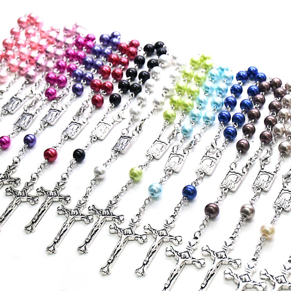 8mm多色珍珠念珠手鏈飾品外貿(mào)十字架手串手環(huán) 11顆prayer 手鏈