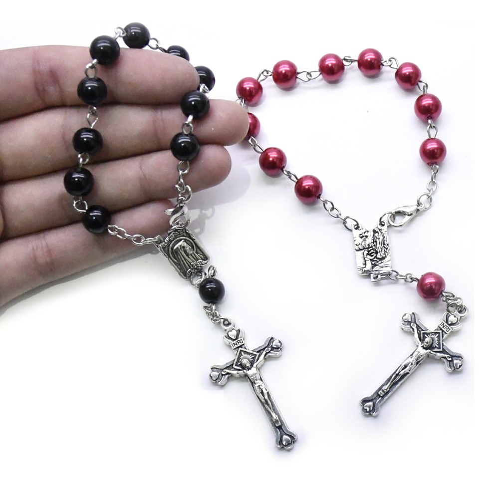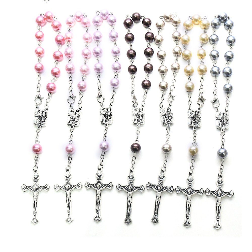 8mm多色珍珠念珠手鏈飾品外貿(mào)十字架手串手環(huán) 11顆prayer 手鏈