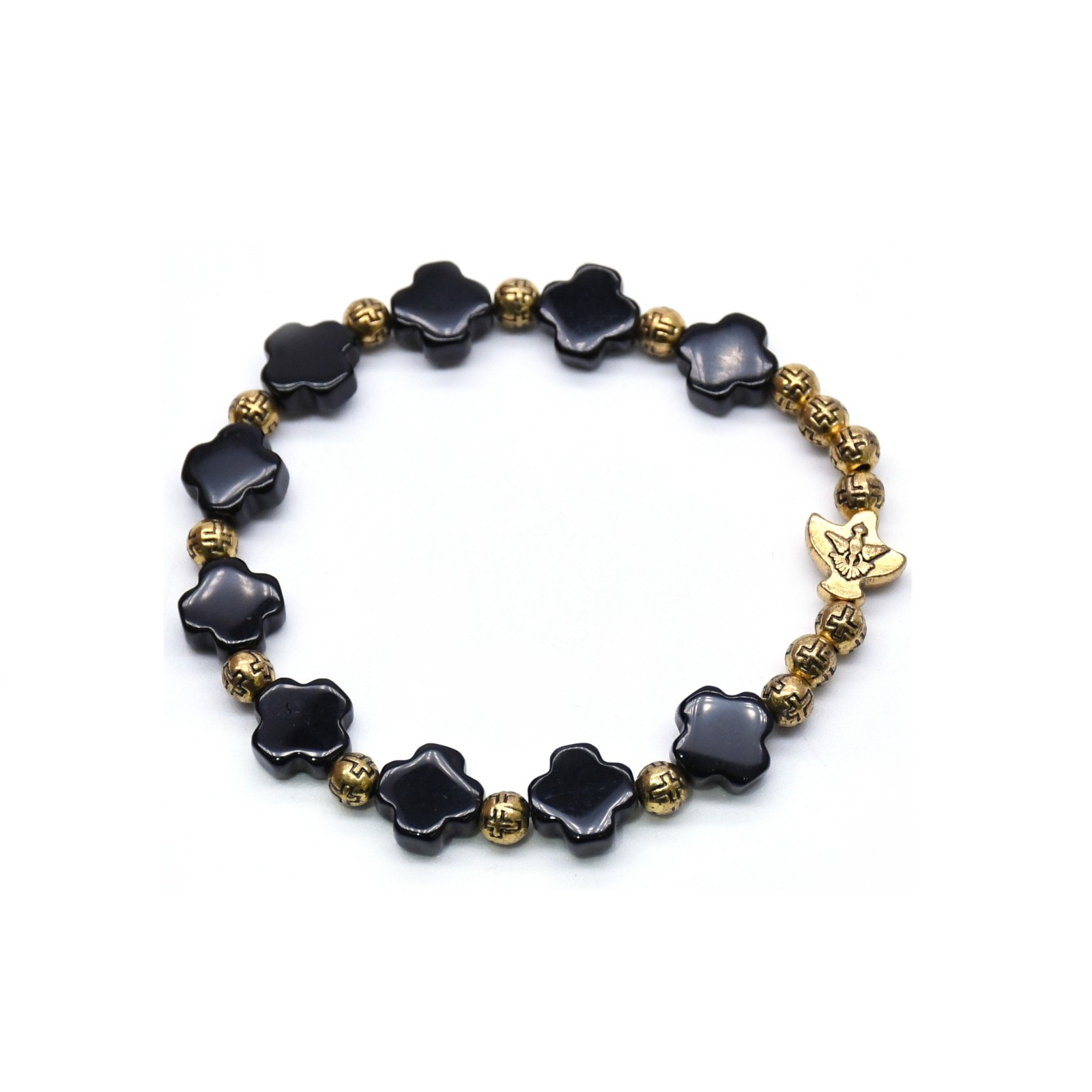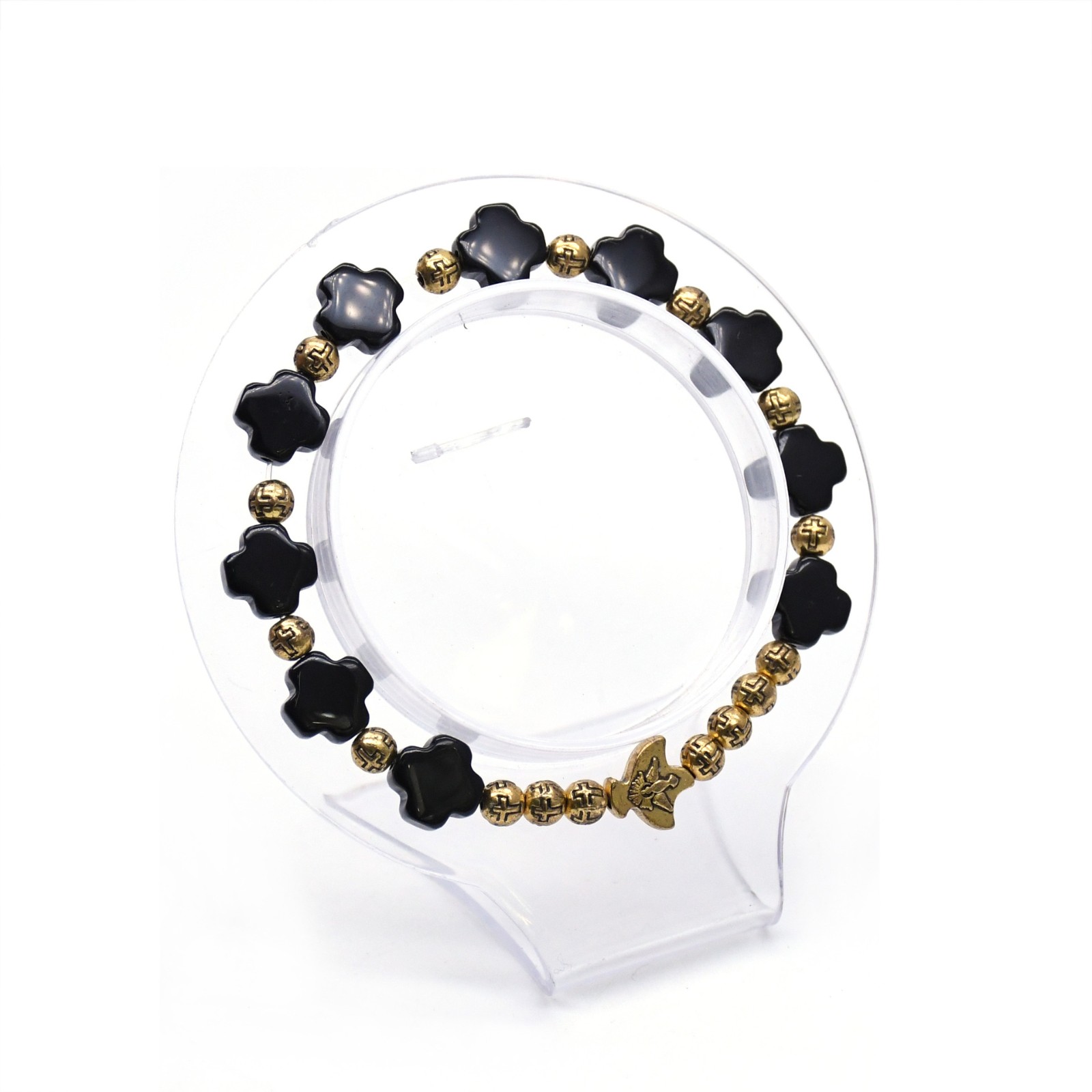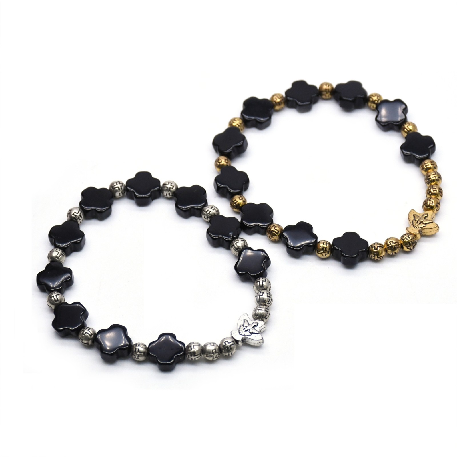 500條起訂做 高檔手工天然黑瑪瑙十字架金屬珠手鏈