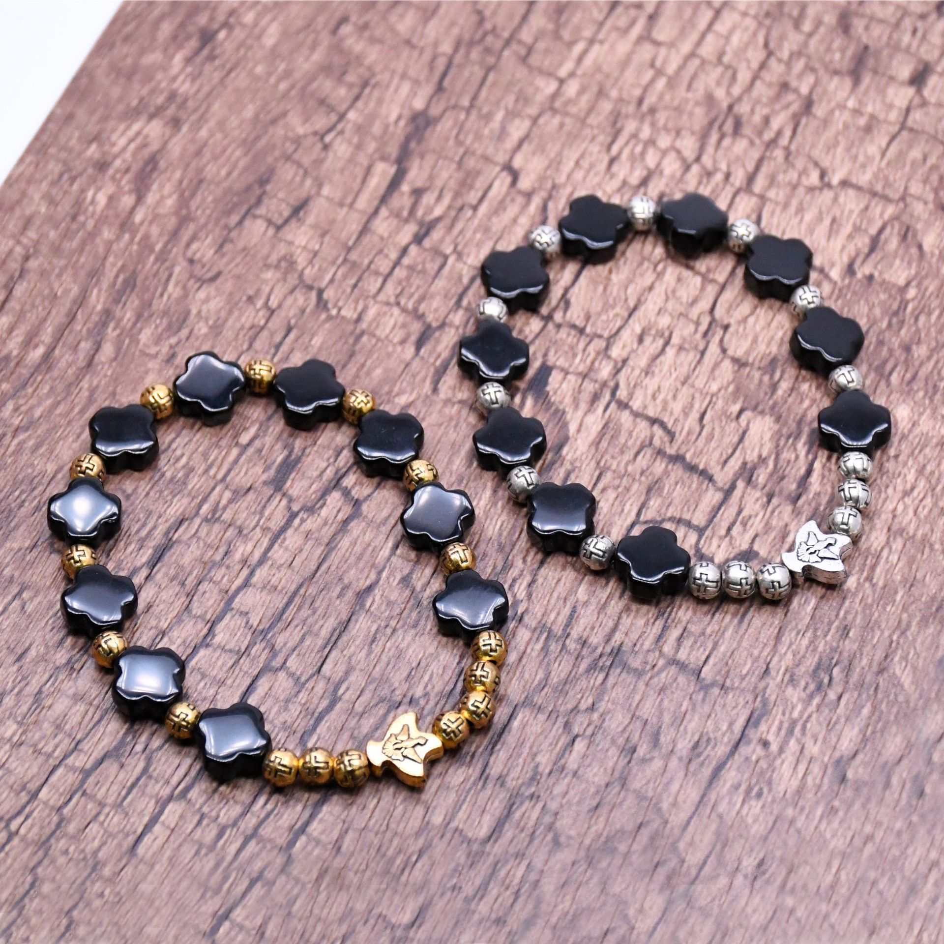 500條起訂做高檔手工天然黑瑪瑙十字架金屬珠手鏈
