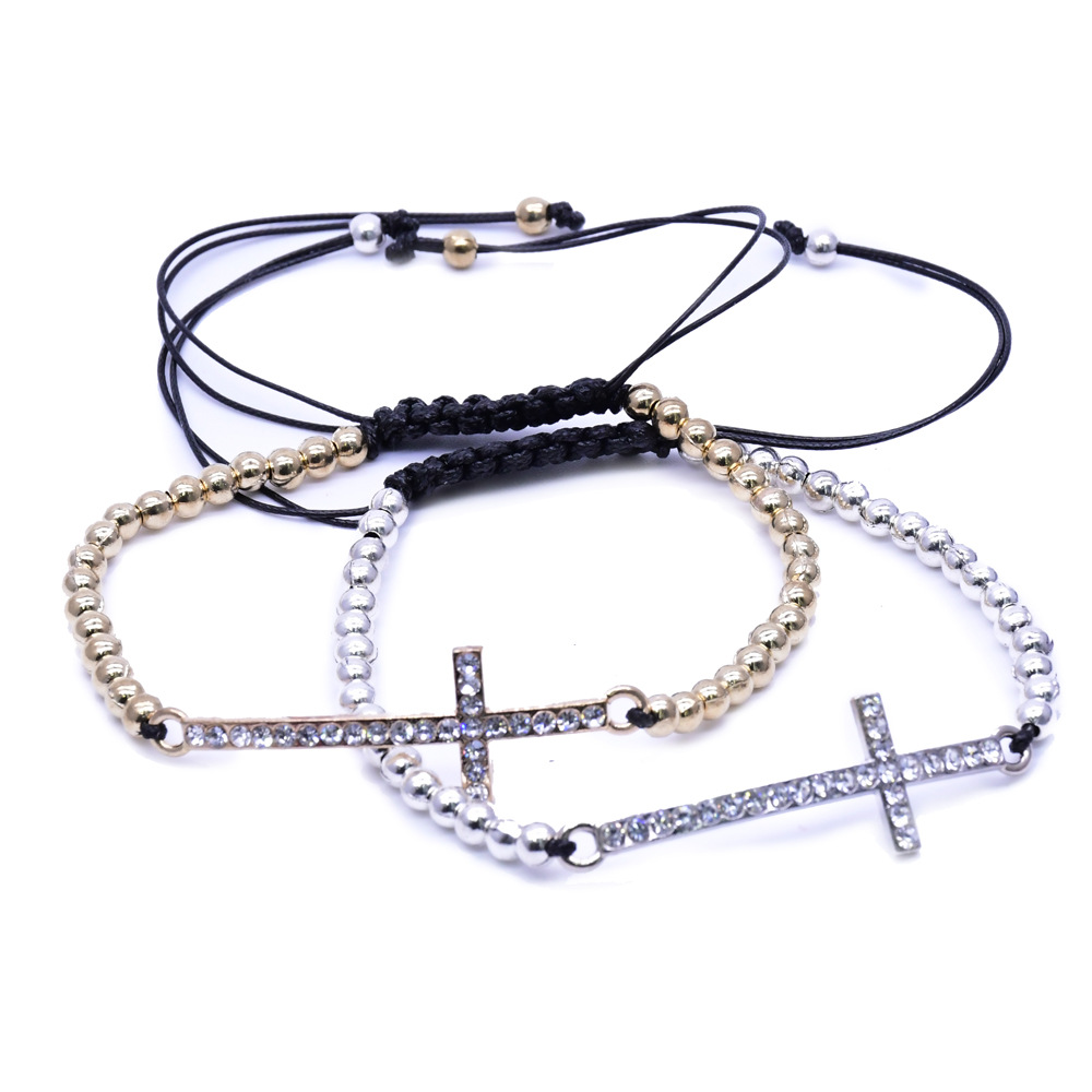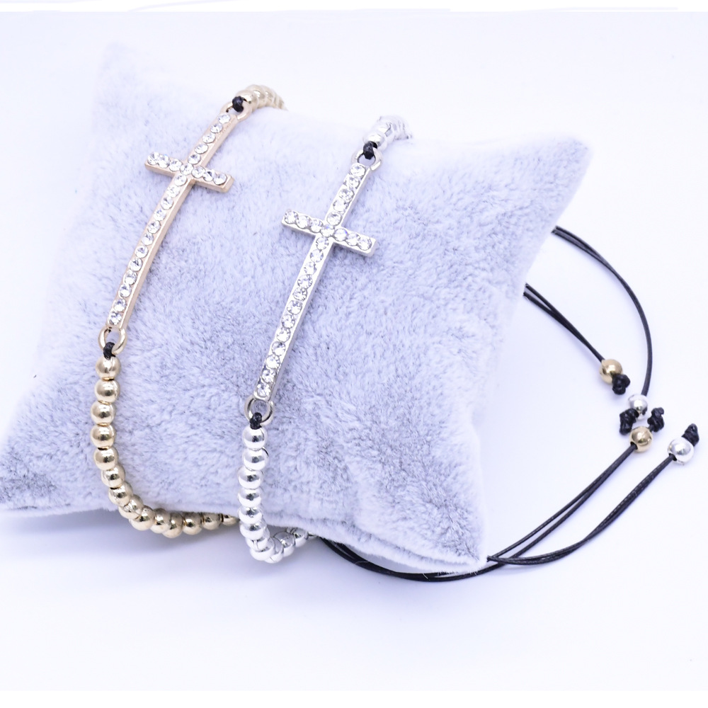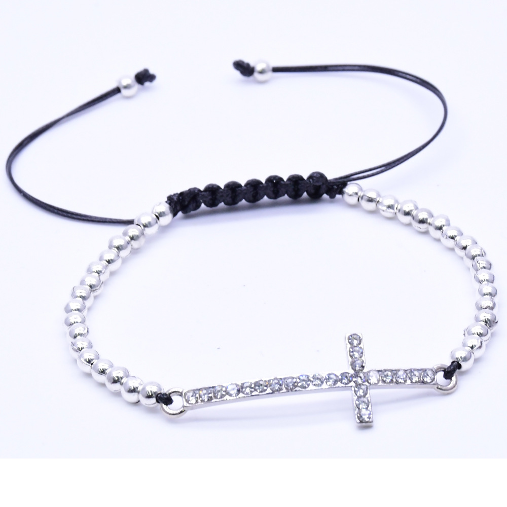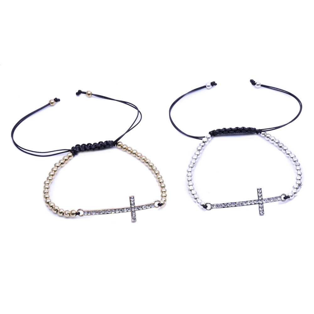 手工編制拉繩中國結(jié)金屬珠點鉆十字架手鏈Cross bracelet