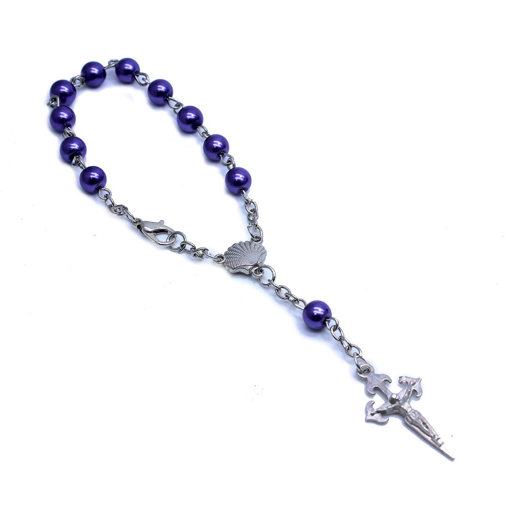 (銀色白K)車掛十字珠念珠洗禮珠十字架手鏈Rosary bracelet