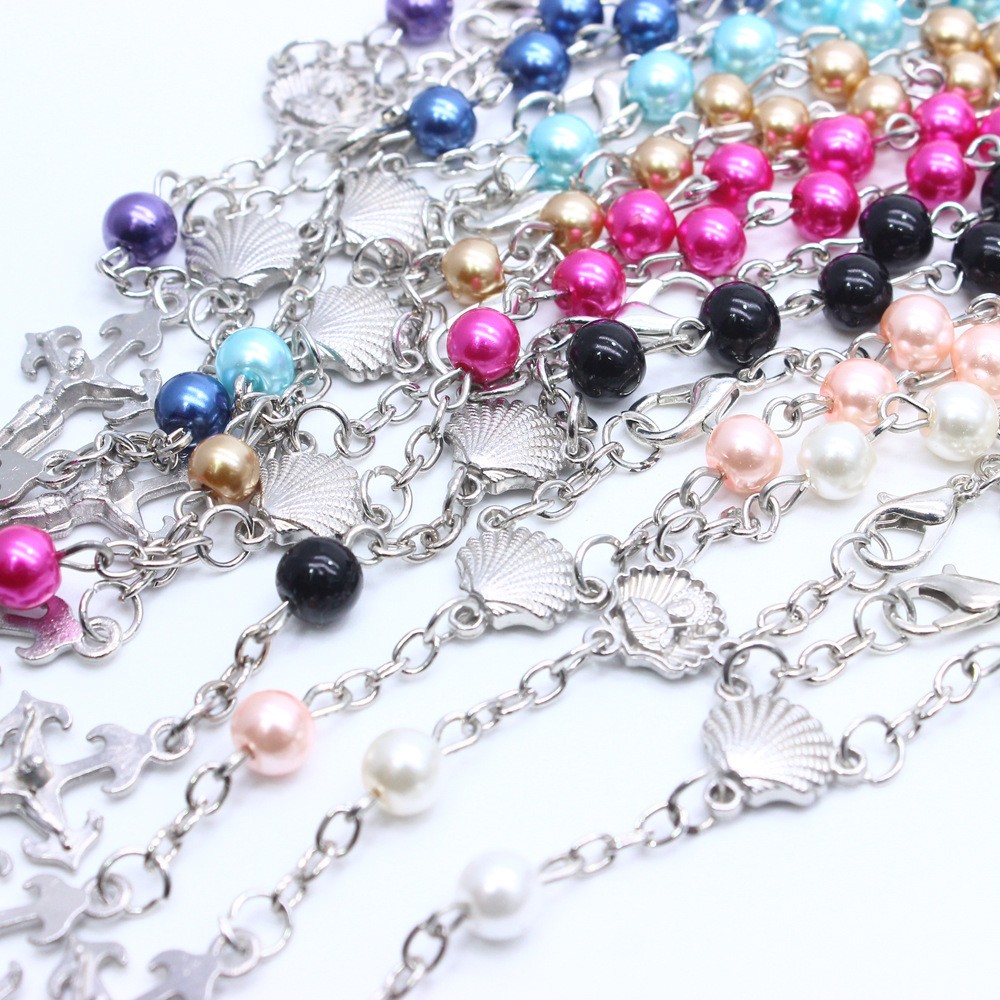 貝殼珍珠一端念珠手鏈 十字架彎針手鏈批發(fā) 海邊旅游紀念品