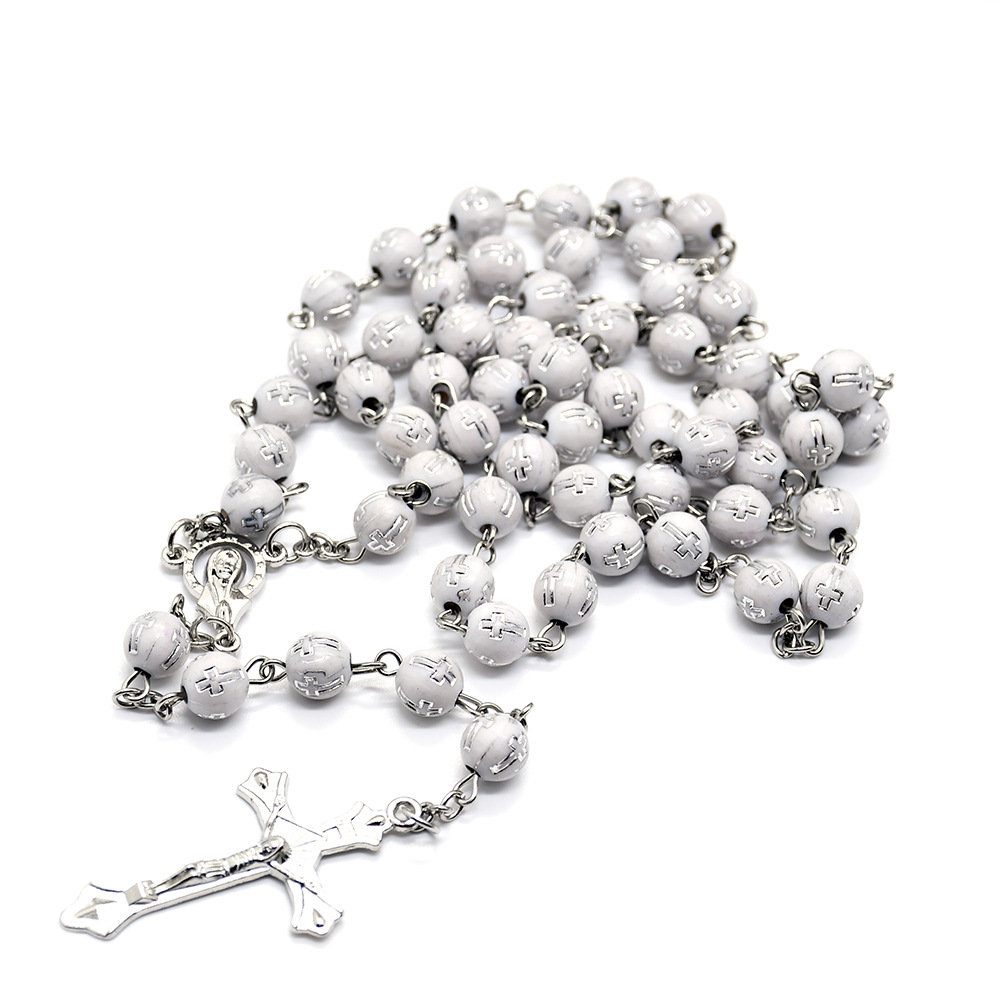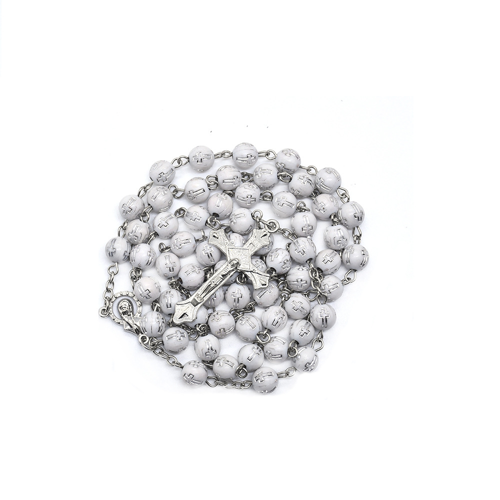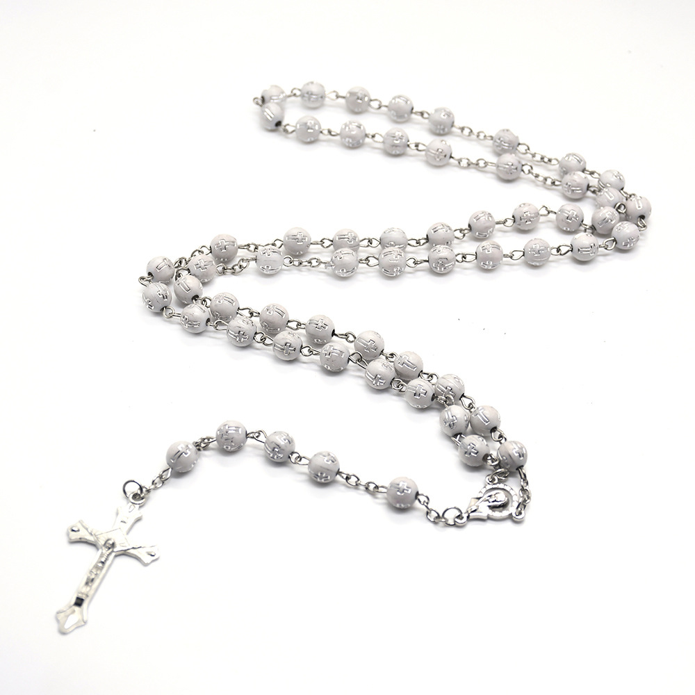 水晶十字架念珠Rosary 項鏈外貿(mào)飾品批發(fā)多色選 6*8mm