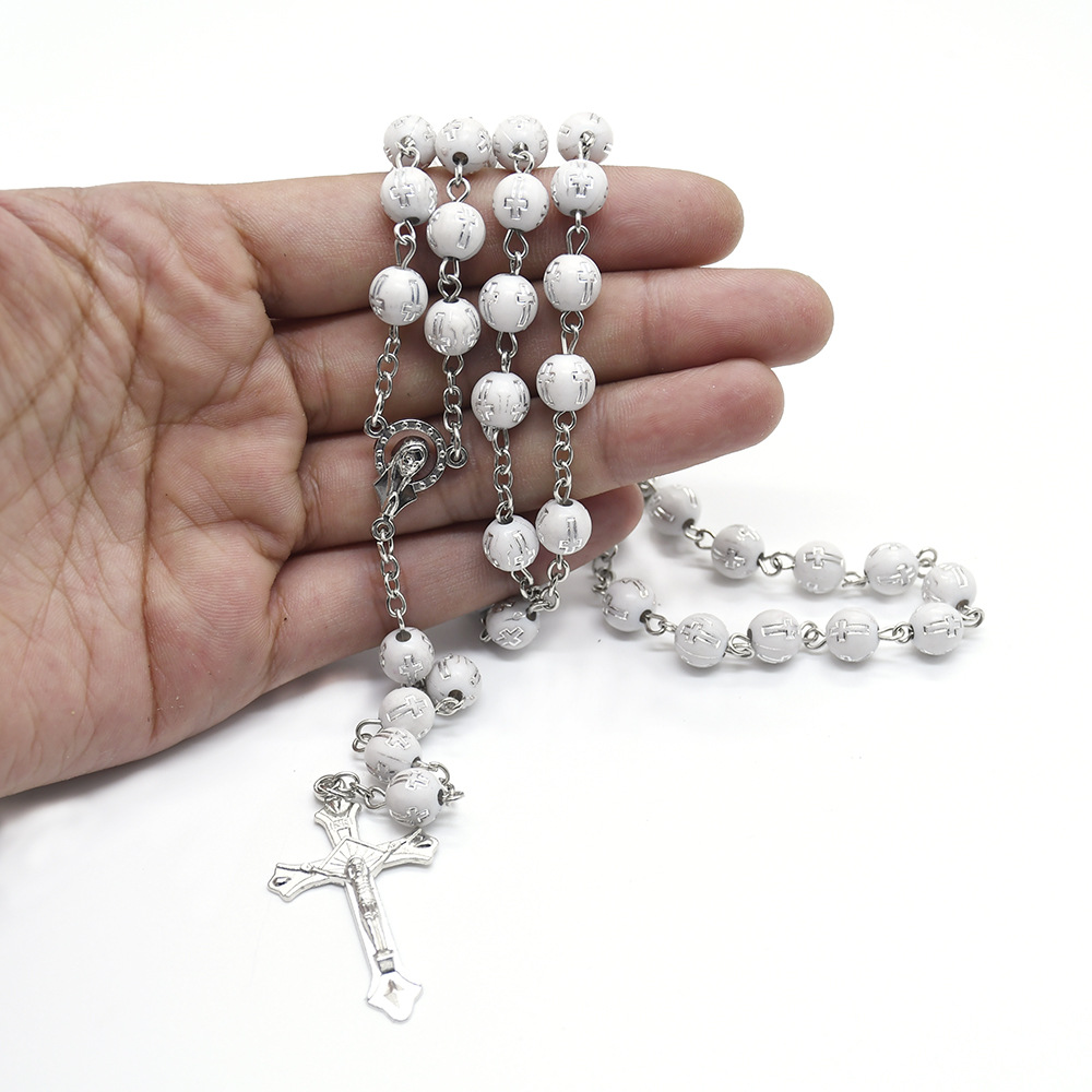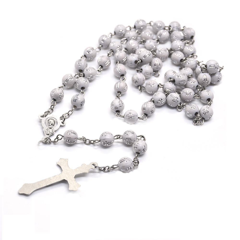 銀色十字架念珠項鏈 毛衣鏈祈禱珠