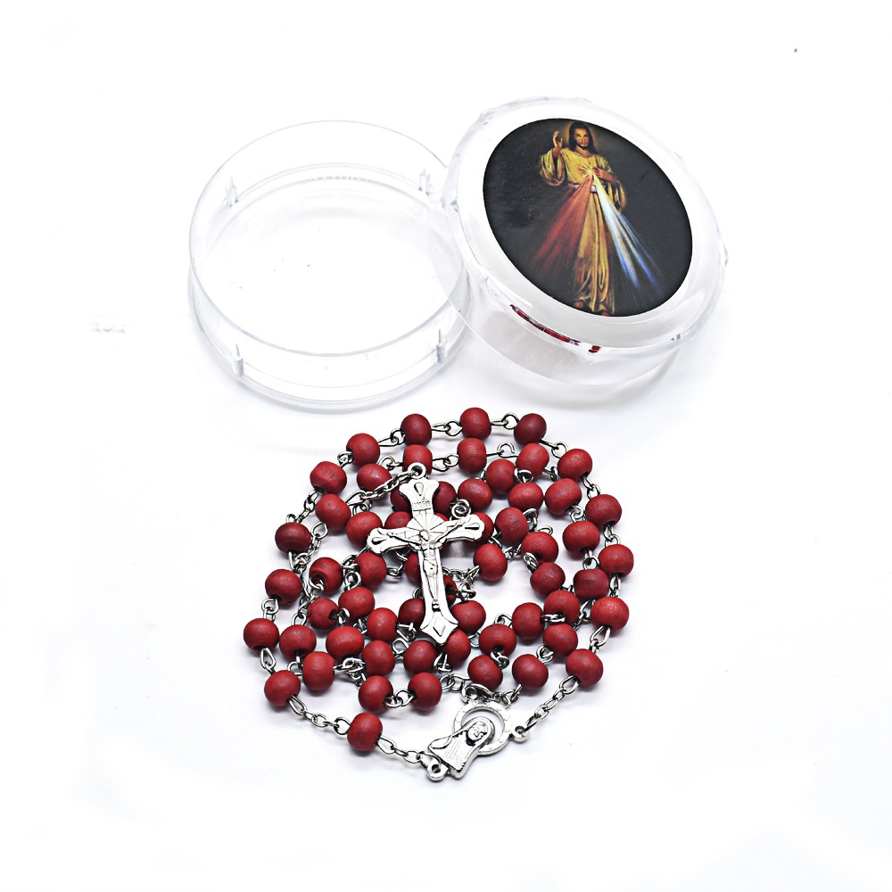 外貿(mào)出口專供廠家貨源特價經(jīng)典款香味酒紅色木珠十字架項鏈盒裝套