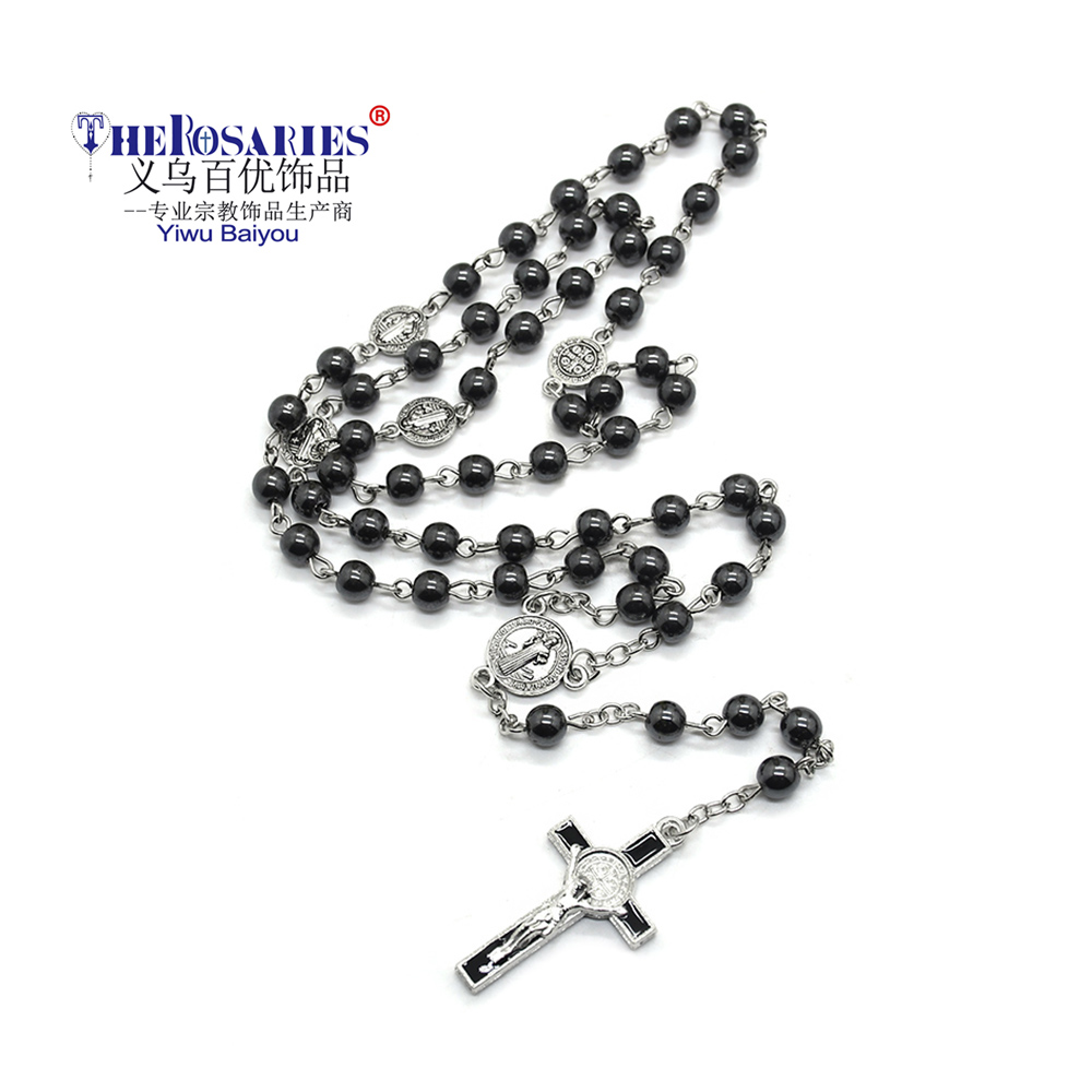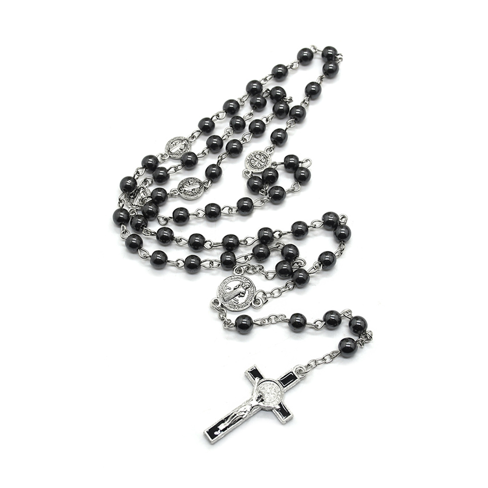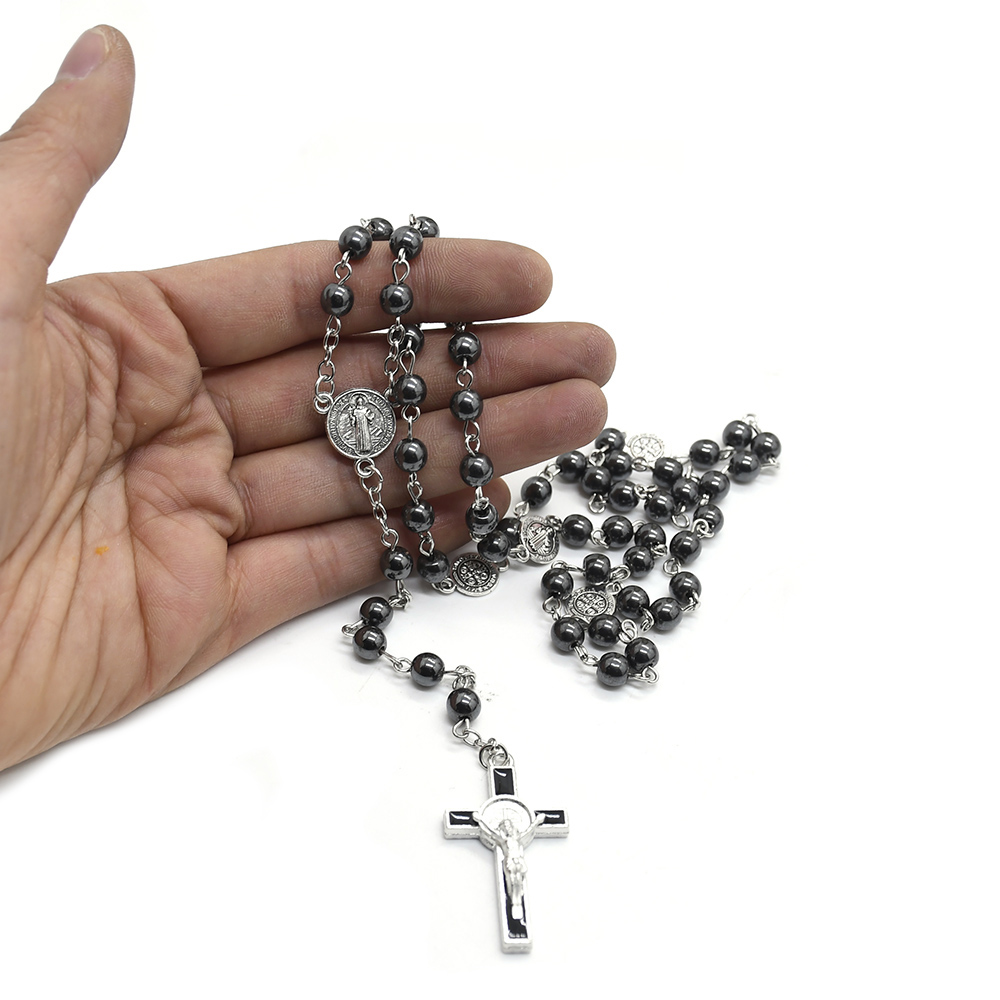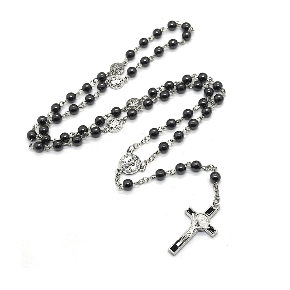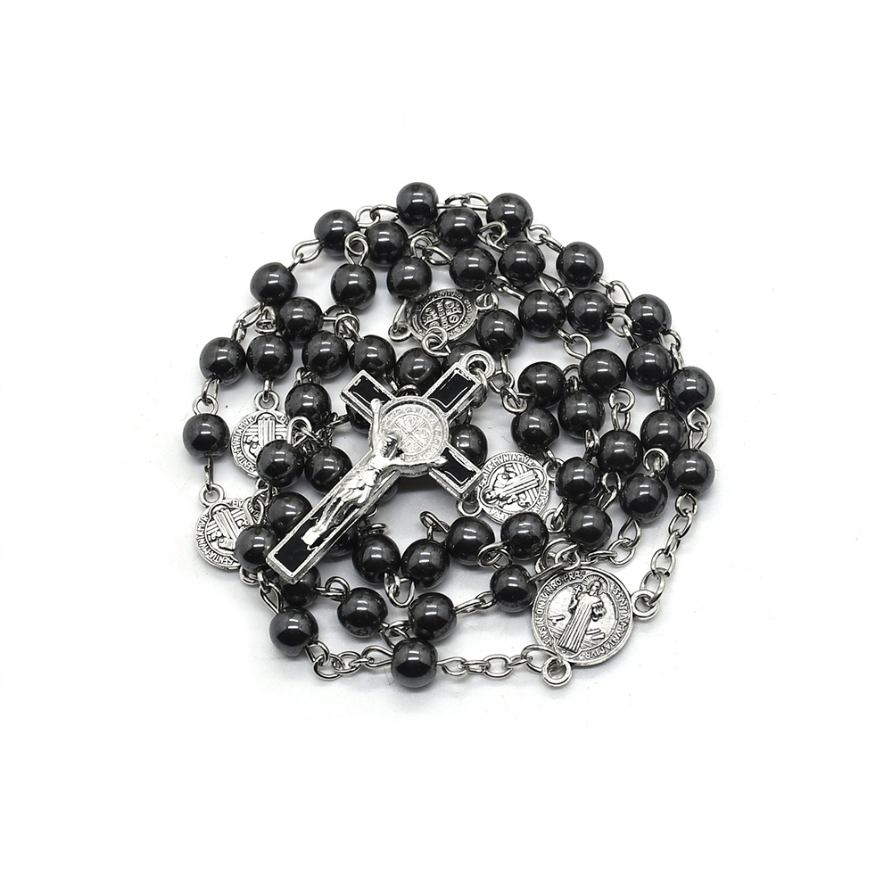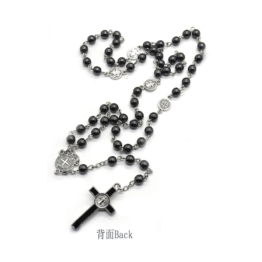 圣本篤黑膽石念珠項(xiàng)鏈?zhǔn)旨茼?xiàng)鏈飾品Rosary Beads