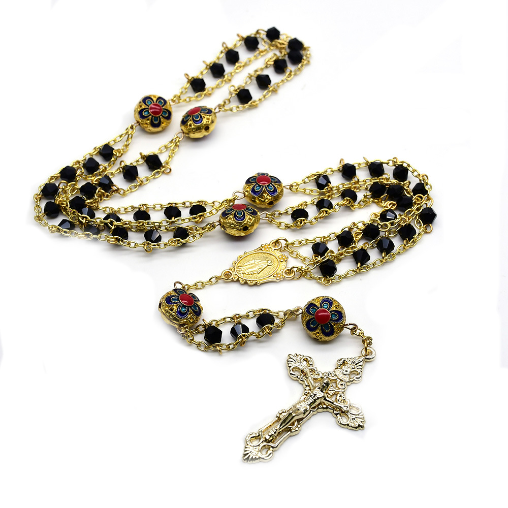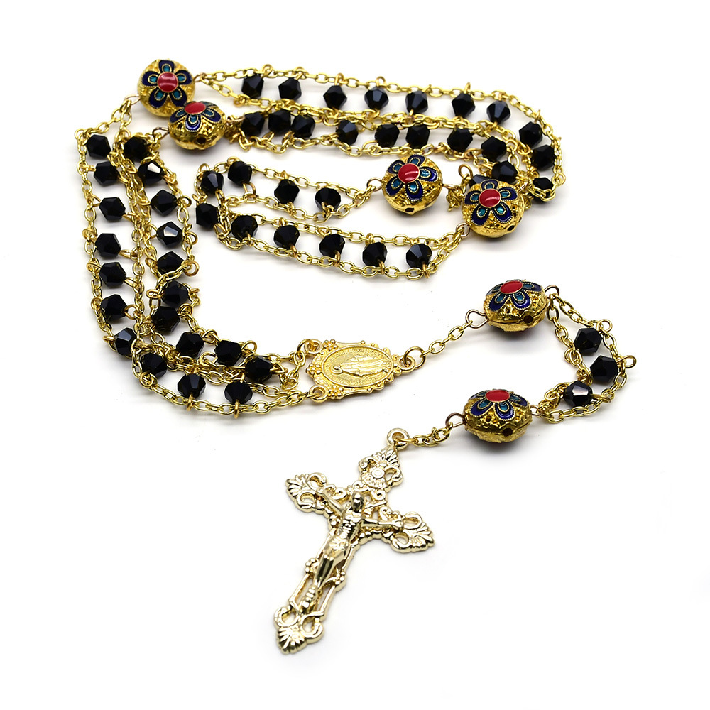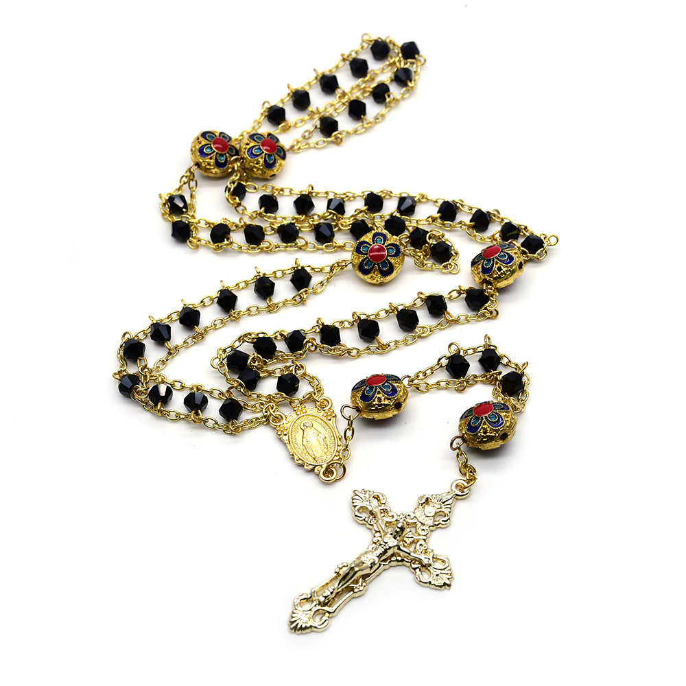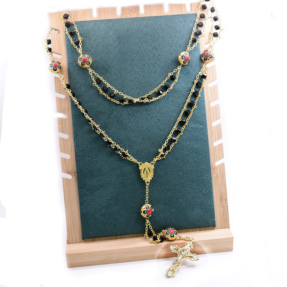 外貿(mào)電商飾品十字架雙層水晶念珠項鏈