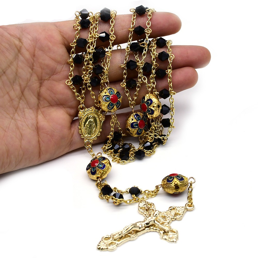 【廠家直銷】金屬漏空念珠項鏈十字架項鏈