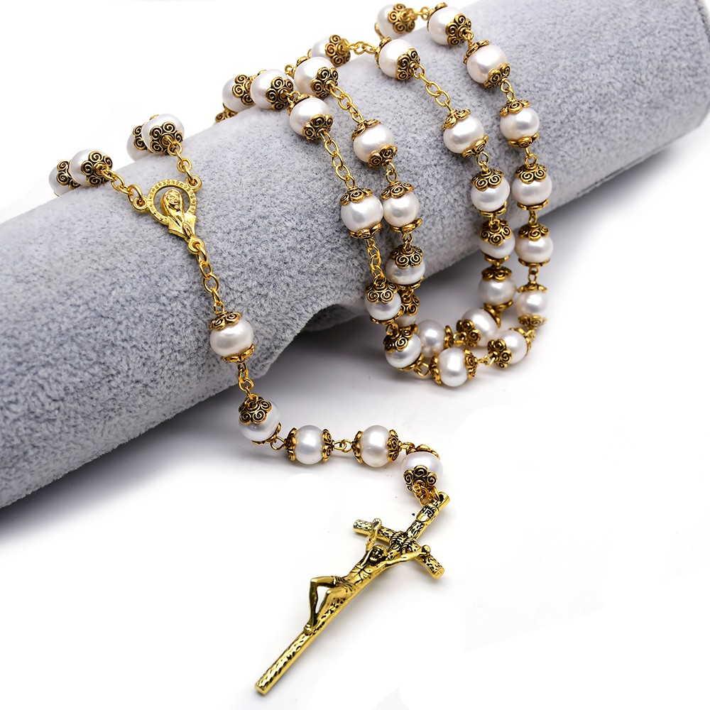 圣誕贈(zèng)品天主教基督教古青銅歐美復(fù)古圖畫石十字架飾品念珠項(xiàng)鏈