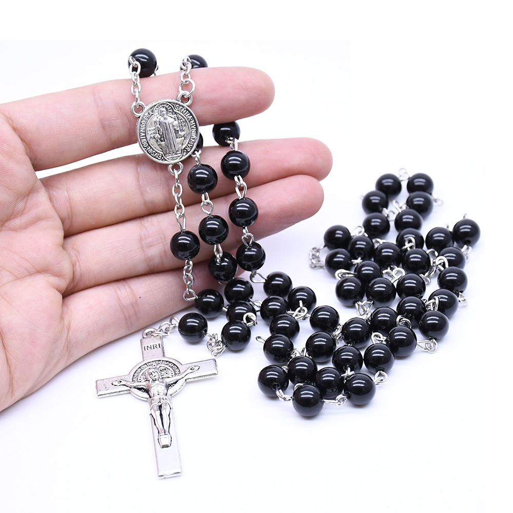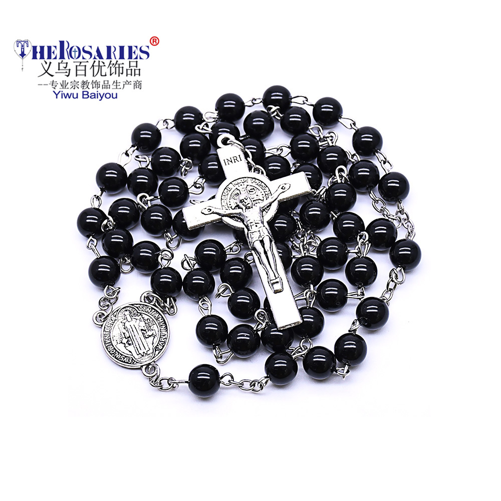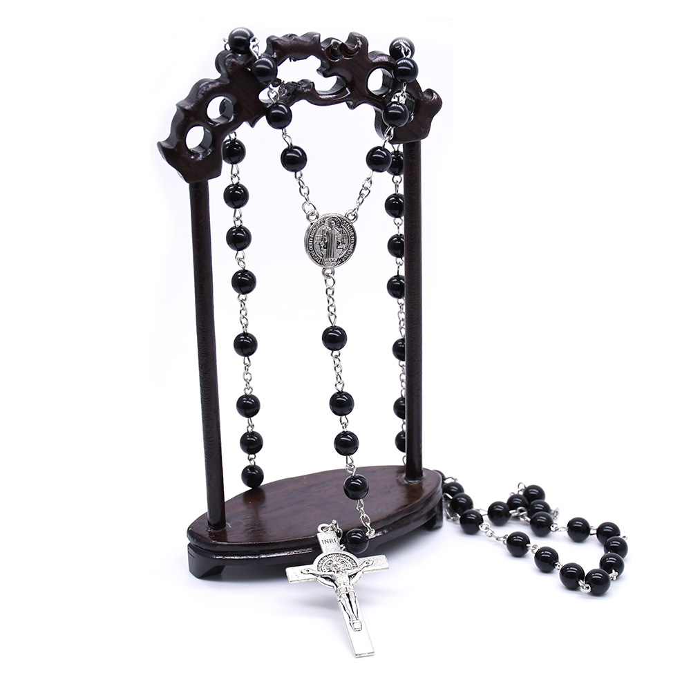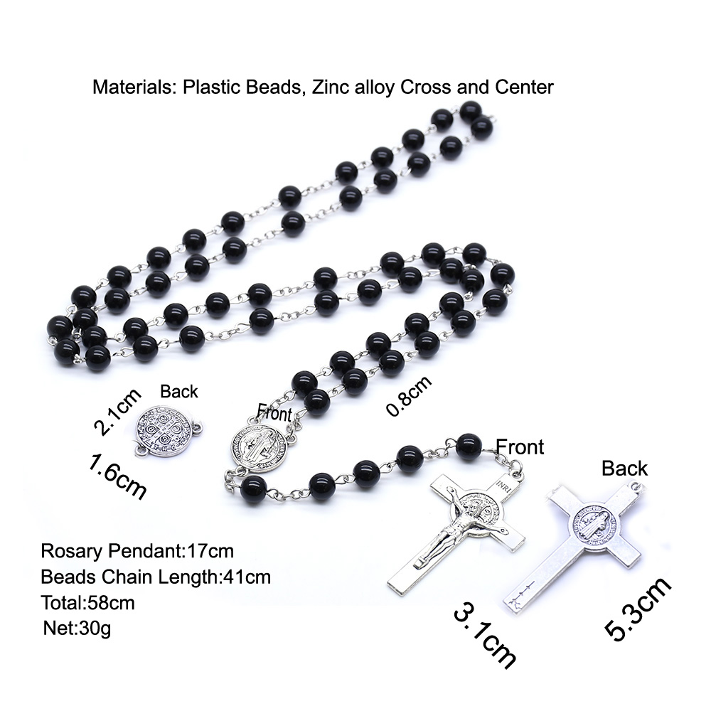 材質(zhì): 黑色塑料壓克力珠, 鋅合金十字架,三角牌