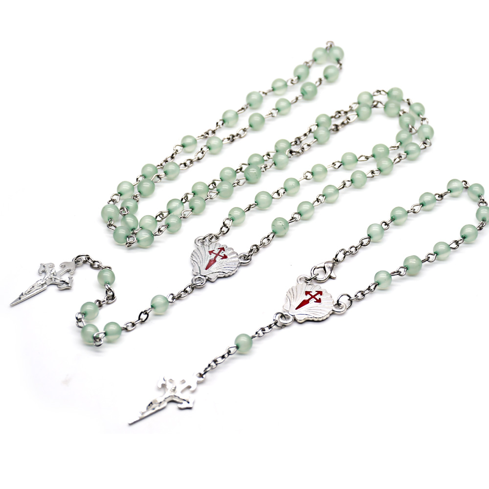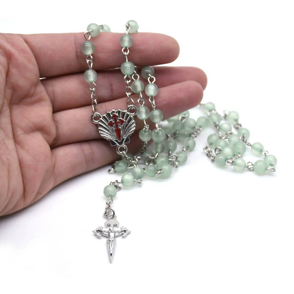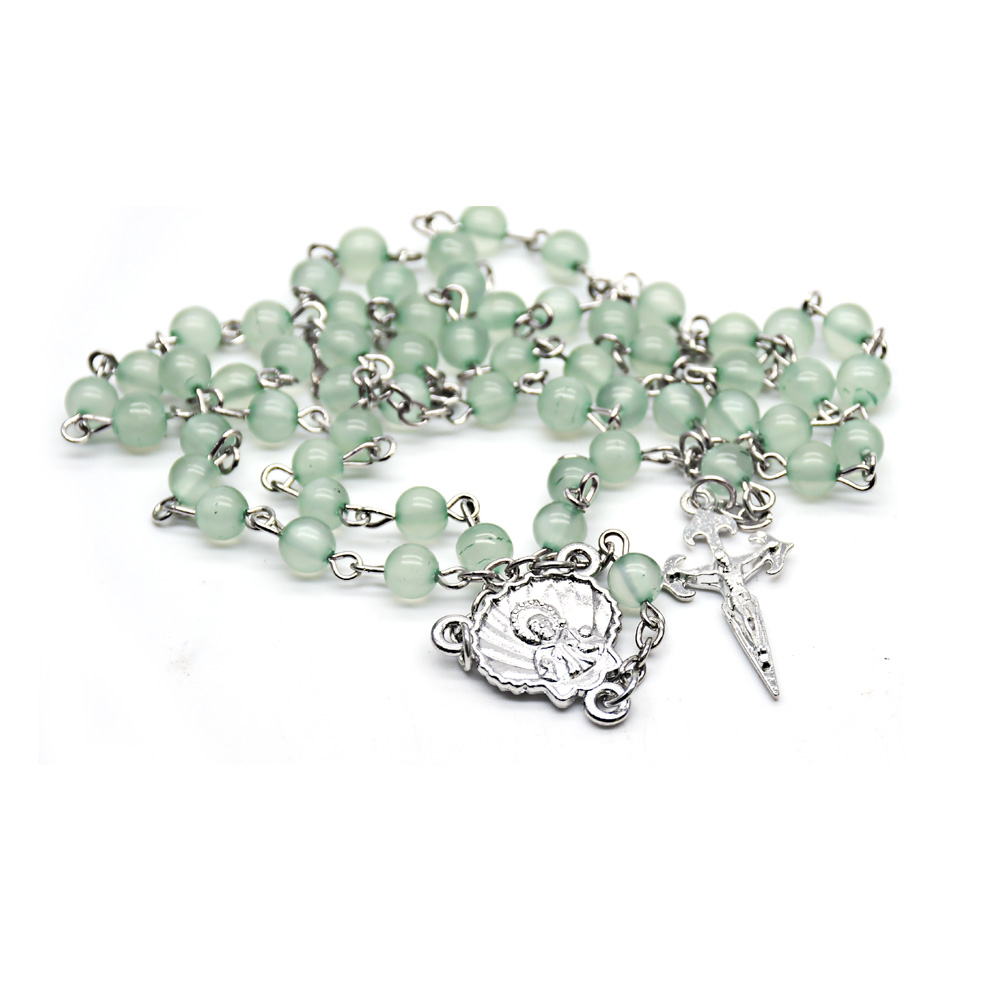 水晶十字架念珠Rosary 項(xiàng)鏈外貿(mào)飾品批發(fā)多色選 6*8mm