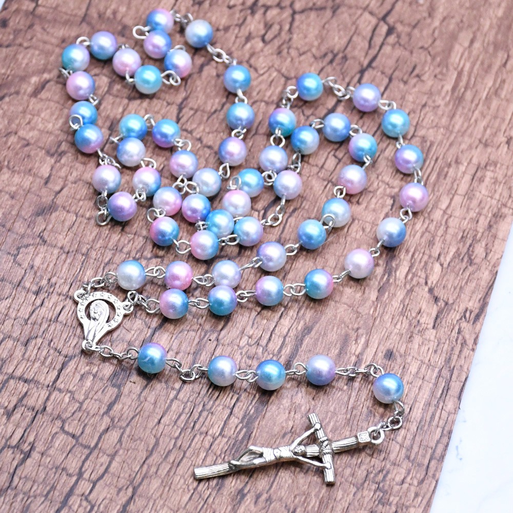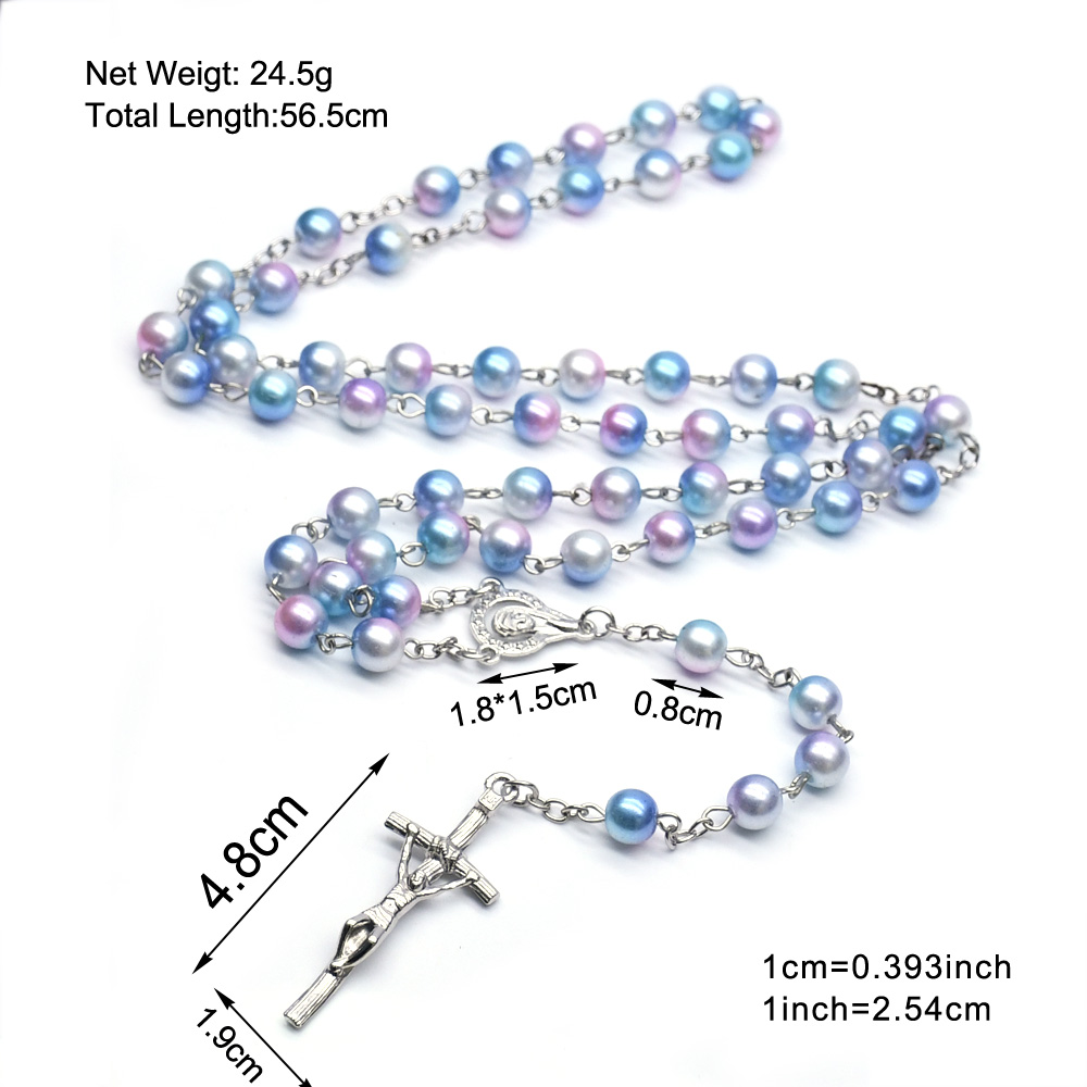 念珠飾品批發(fā) 十字架項(xiàng)鏈塑料玫瑰珠項(xiàng)鏈
