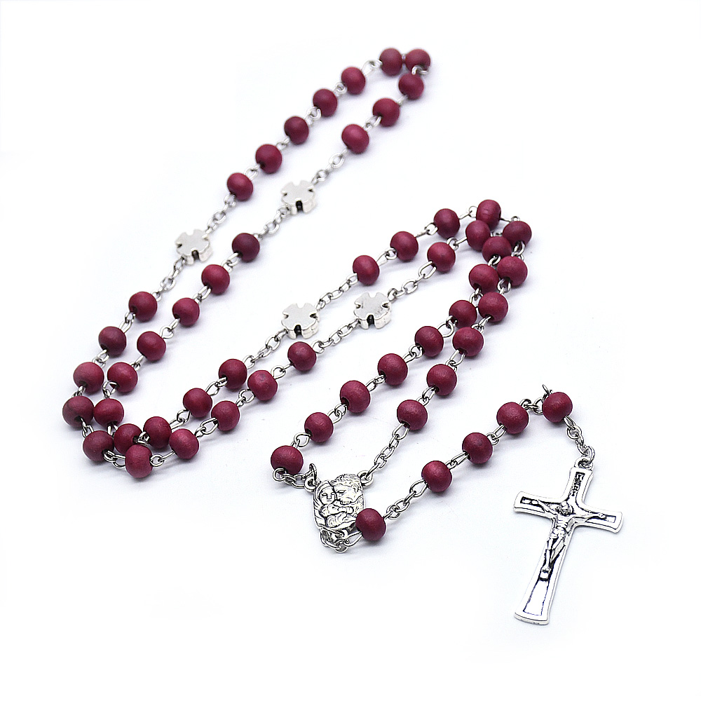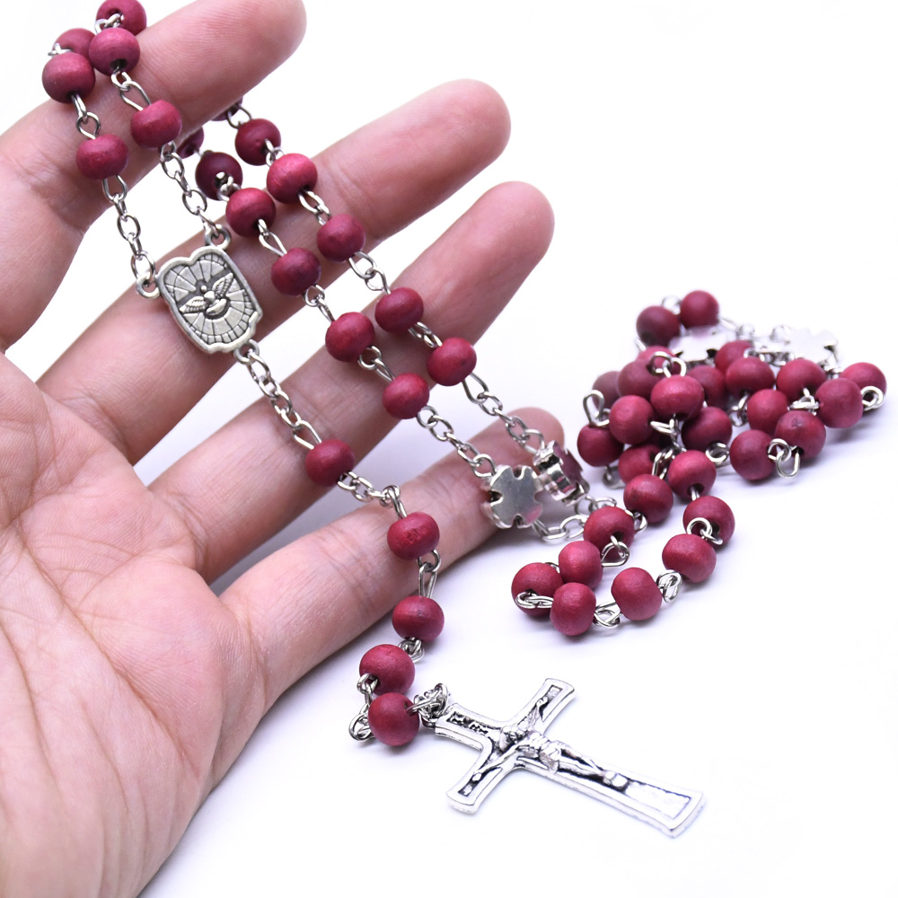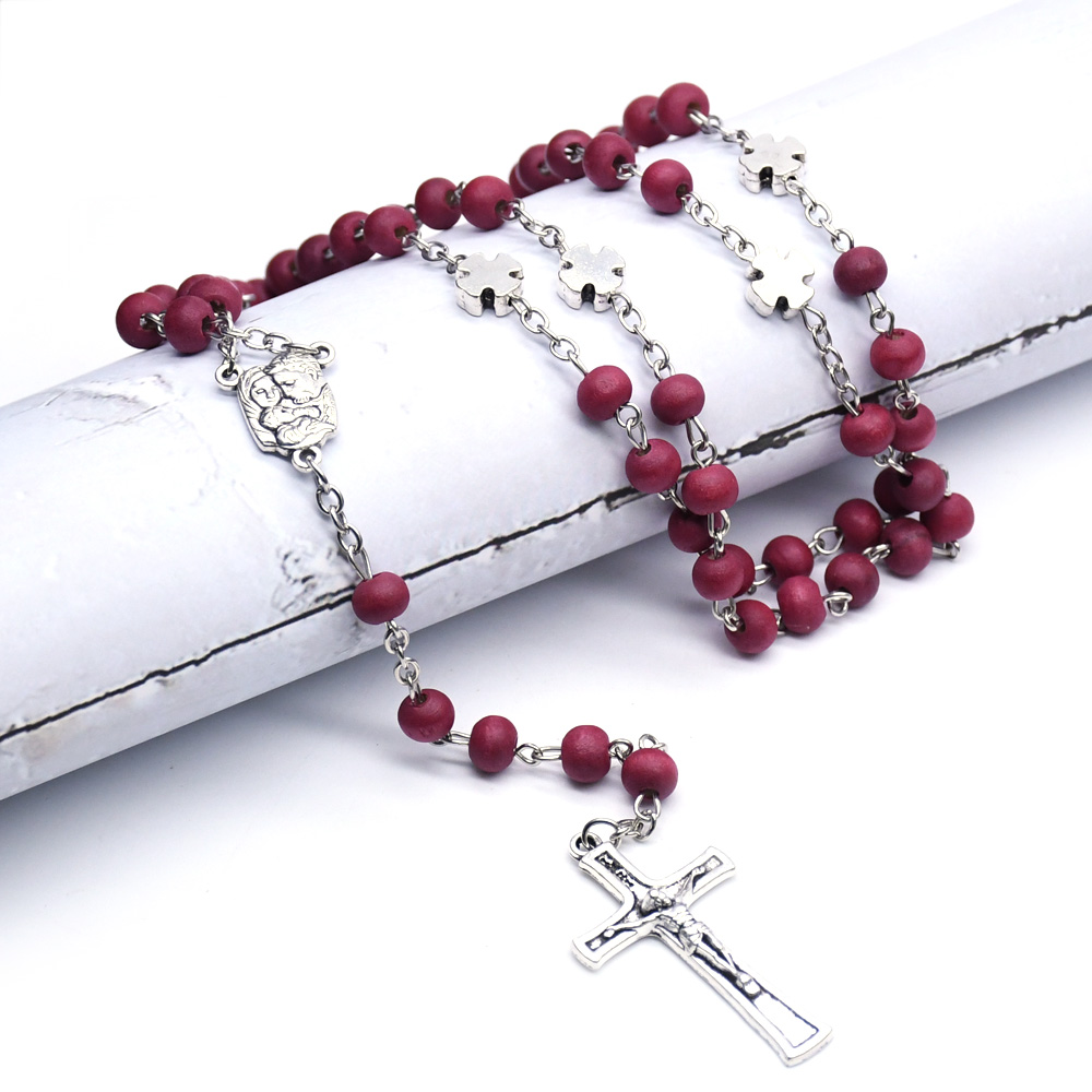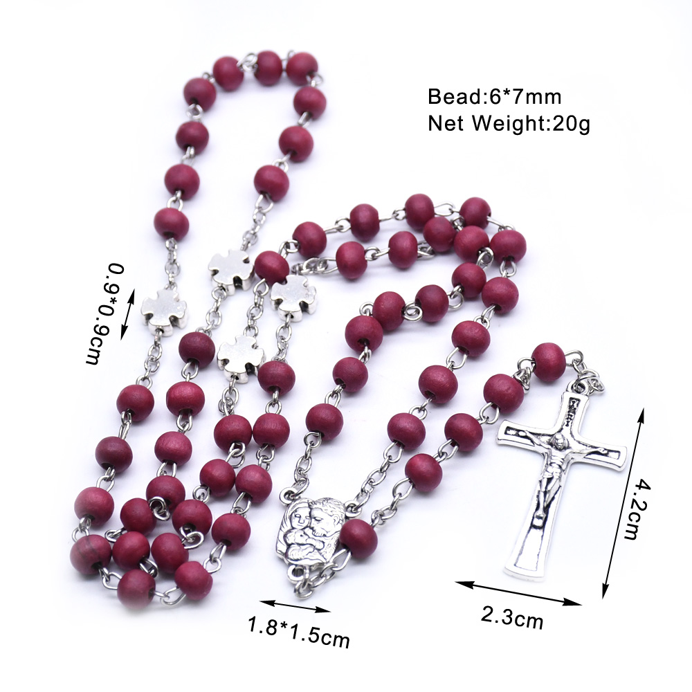 AMAZON跨境外貿(mào)飾品 酒紅十字架紅木珠念珠項鏈 珠鏈