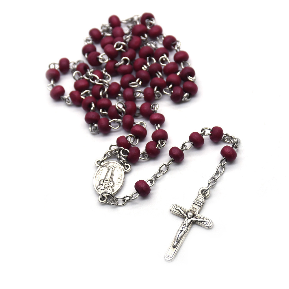 AMAZON跨境外貿(mào)飾品 酒紅十字架紅木珠念珠項鏈 珠鏈
